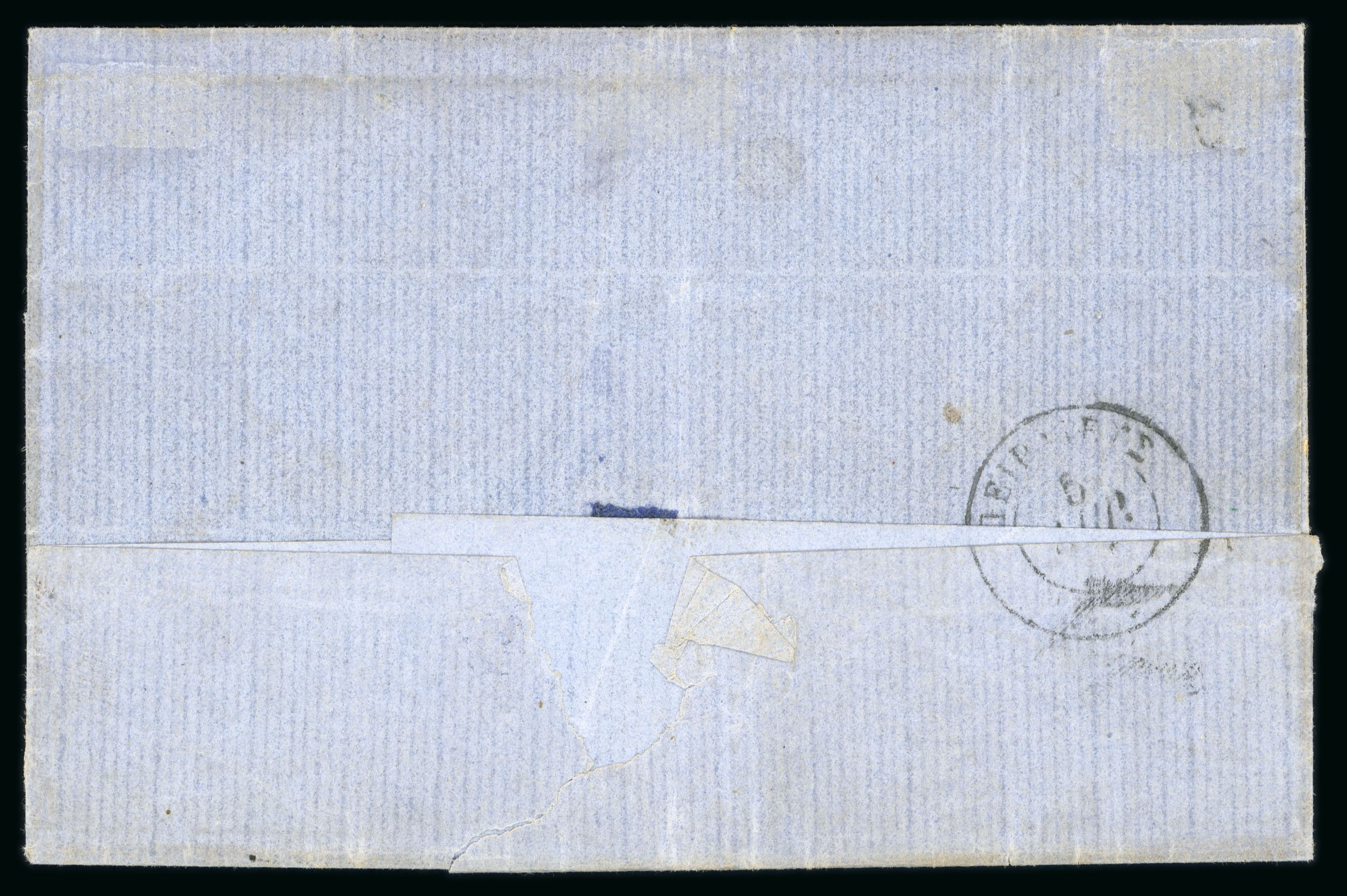 1869 Unpaid letter from Paris (Dec. 16th/28th, 1869) to Athens (Dec. 25th, 1869/Jan. 6.th, 1870). Taxed on arrival with 90 lepta (black tax marking "90 LEP") for the transportation by the boats of the "Compagnie des Lignes de la