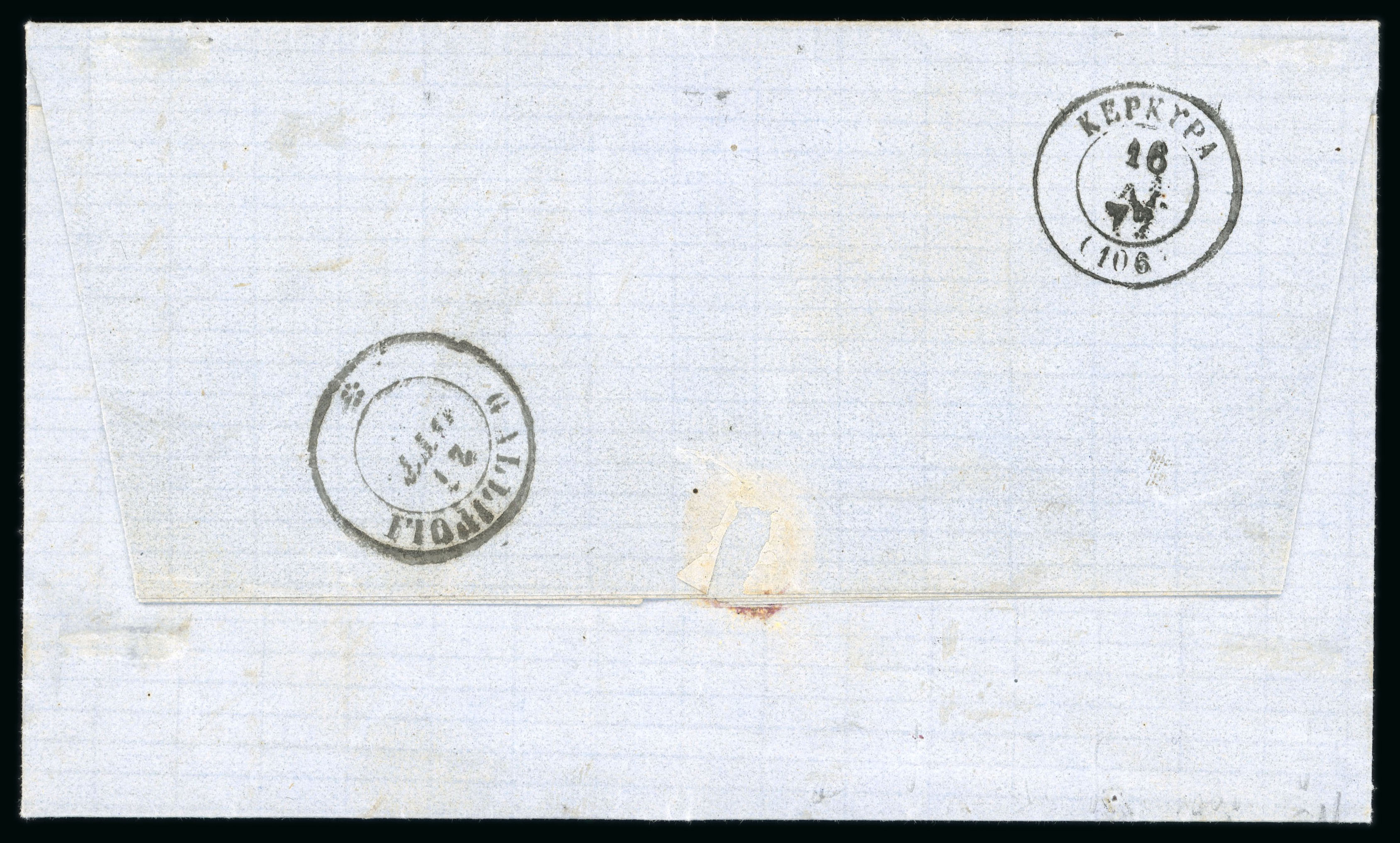 1874 Unpaid letter from Messina (Oct. 12th/24th, 1874) to Corfou (Oct.16th/28th, 1874), via Gallipoli (Oct 15th/27th, 1874).