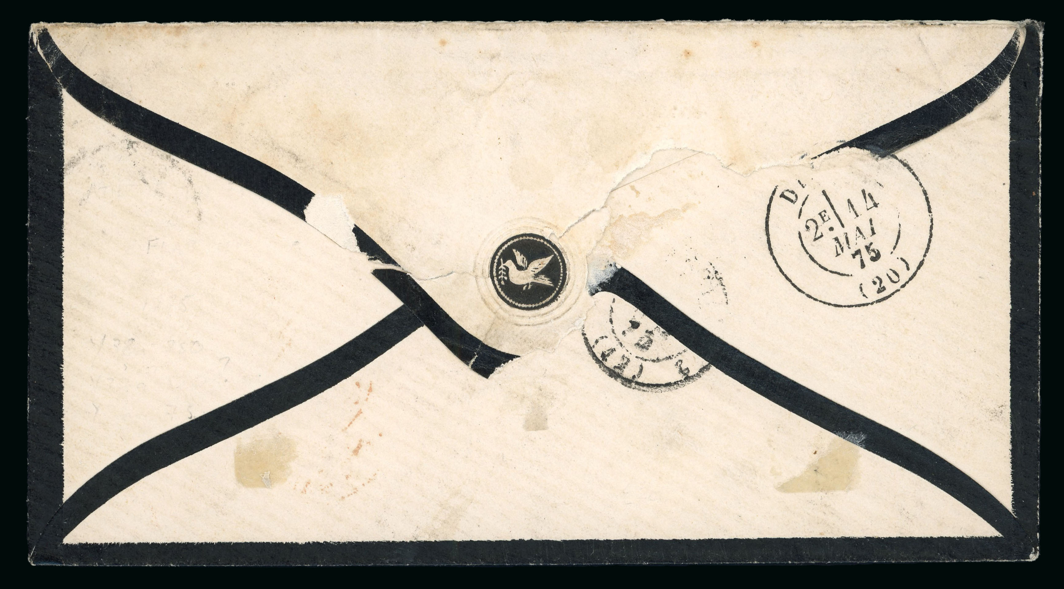 1875 Paid mourning cover from Athens (June 26th/July 8th, 1875) to Marseille franked with 70 lepta stamps corresponding to the transportation by the boats of the "Compagnie des Paquebots de la Méditerranée" of a letter up to from 10 grams