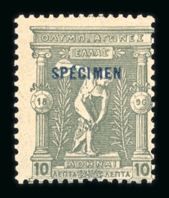 10 Lepta grey overprinted "SPÉCIMEN" in blue, mint with large part original gum, very fine and scarce. (Image 1)