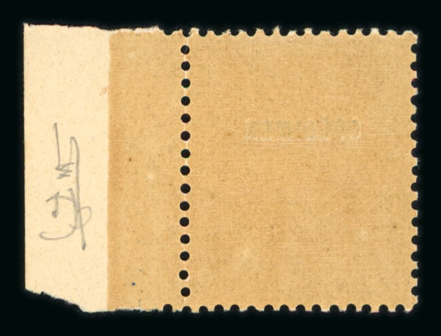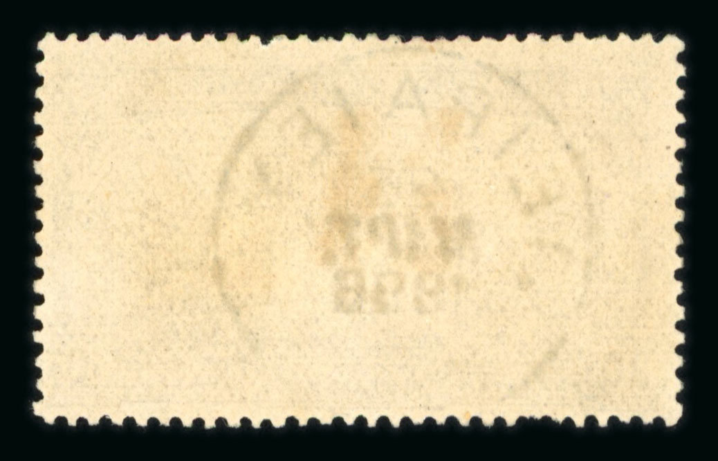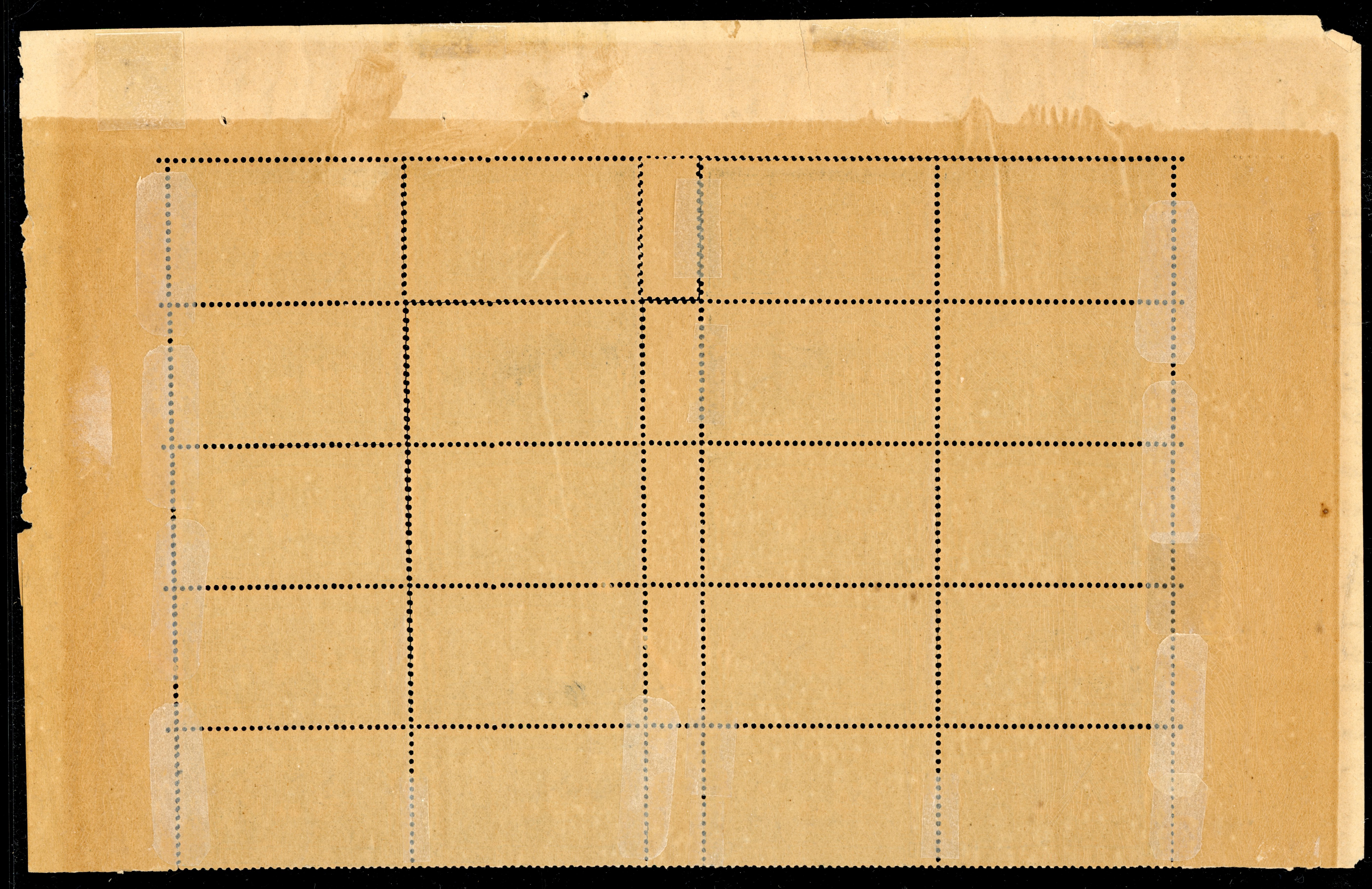 special Treasury cachet to mark their validity. The cachet was normally applied to overprint four small stamps or two large ones. Later, in order to avoid confusion with used stamps, the cachet was applied to the backs of the stamps. (Image 1)