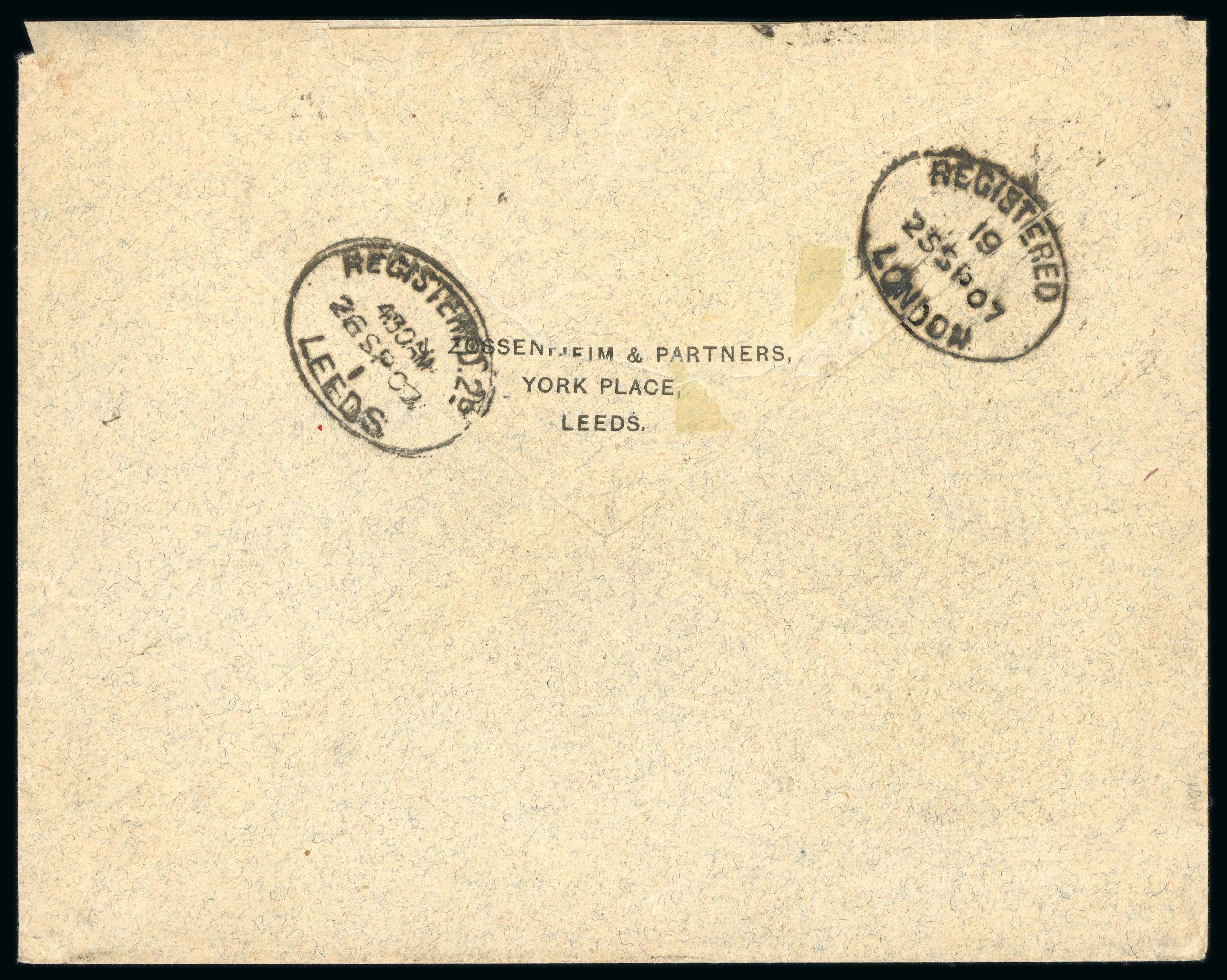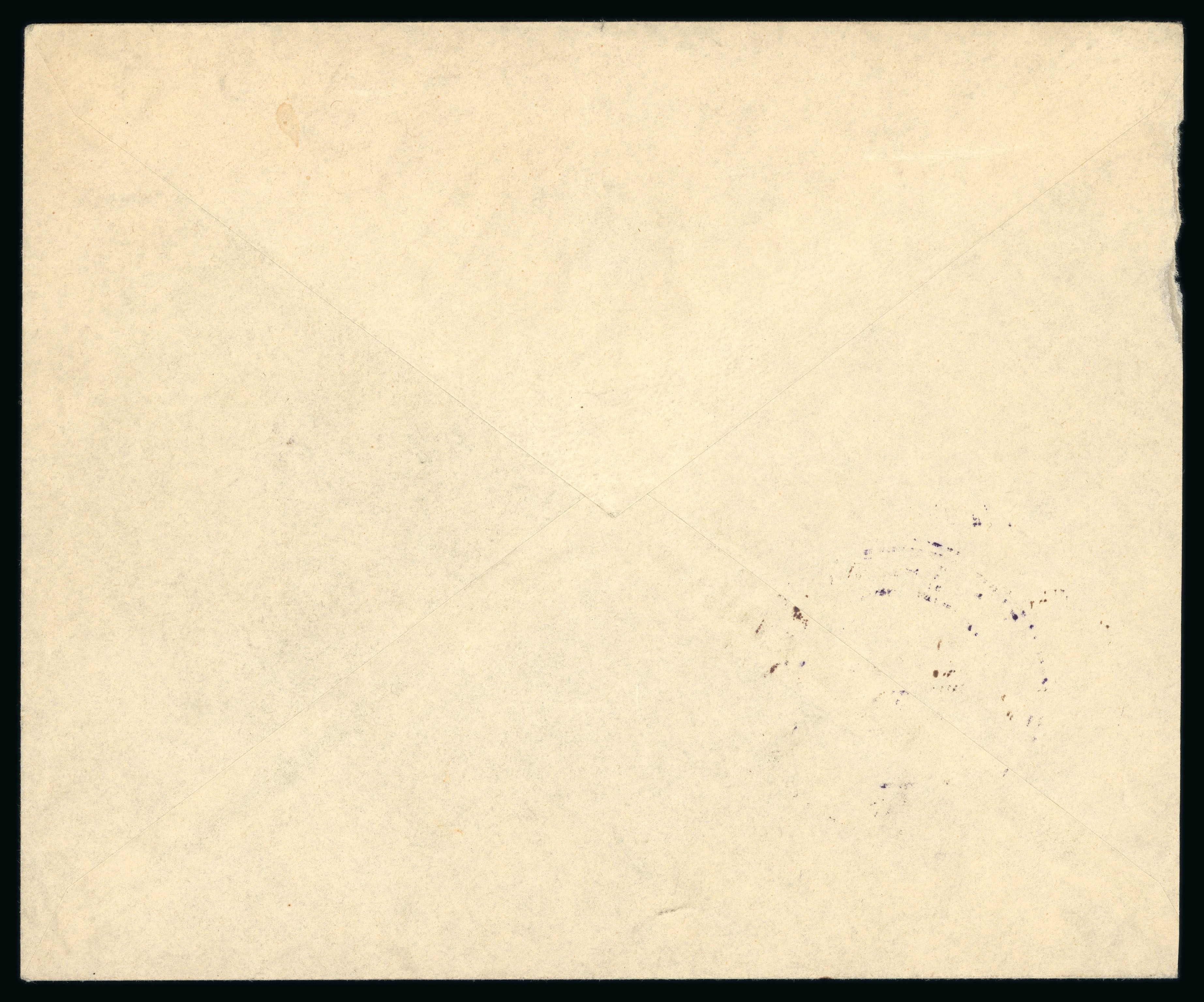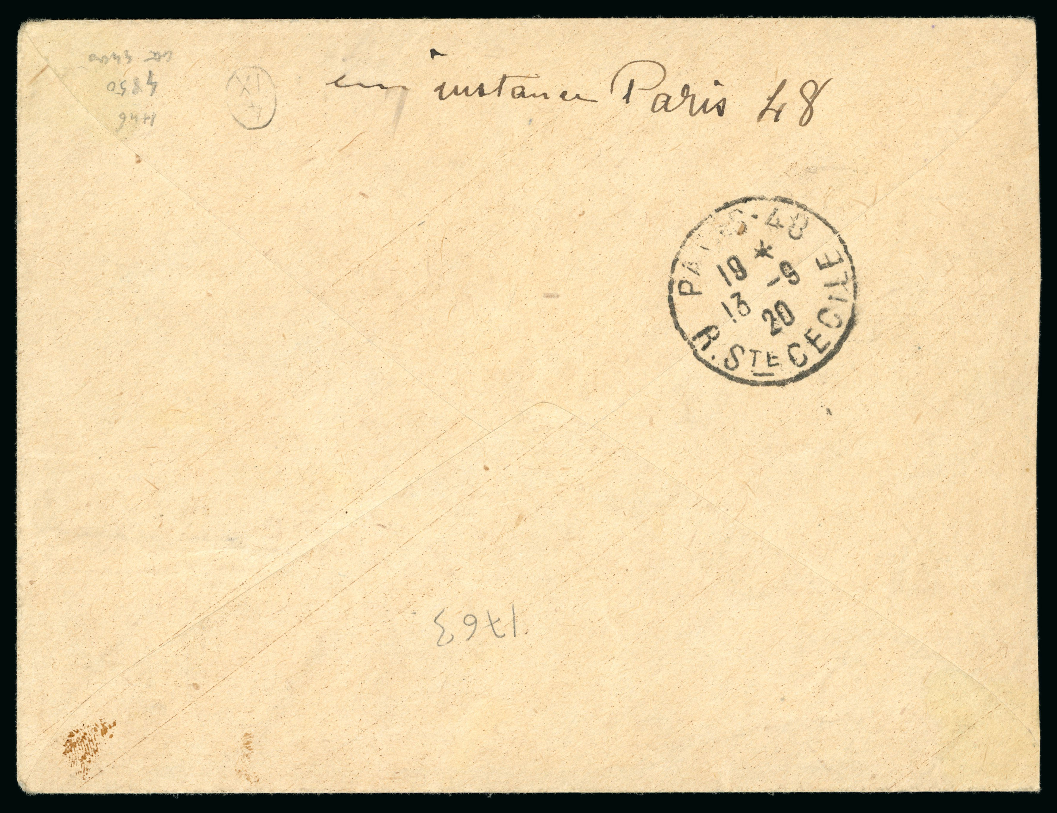 CASTELLORIZO: 1920 Registered envelope to Paris, franked "OF CASTELLORIZO" hs on France Sower 25c and Merson 50c, both neatly tied by large "CASTELLORIZO / CORPS OCCUPATION" cachet in violet with anchor, very fine and extremely rare;