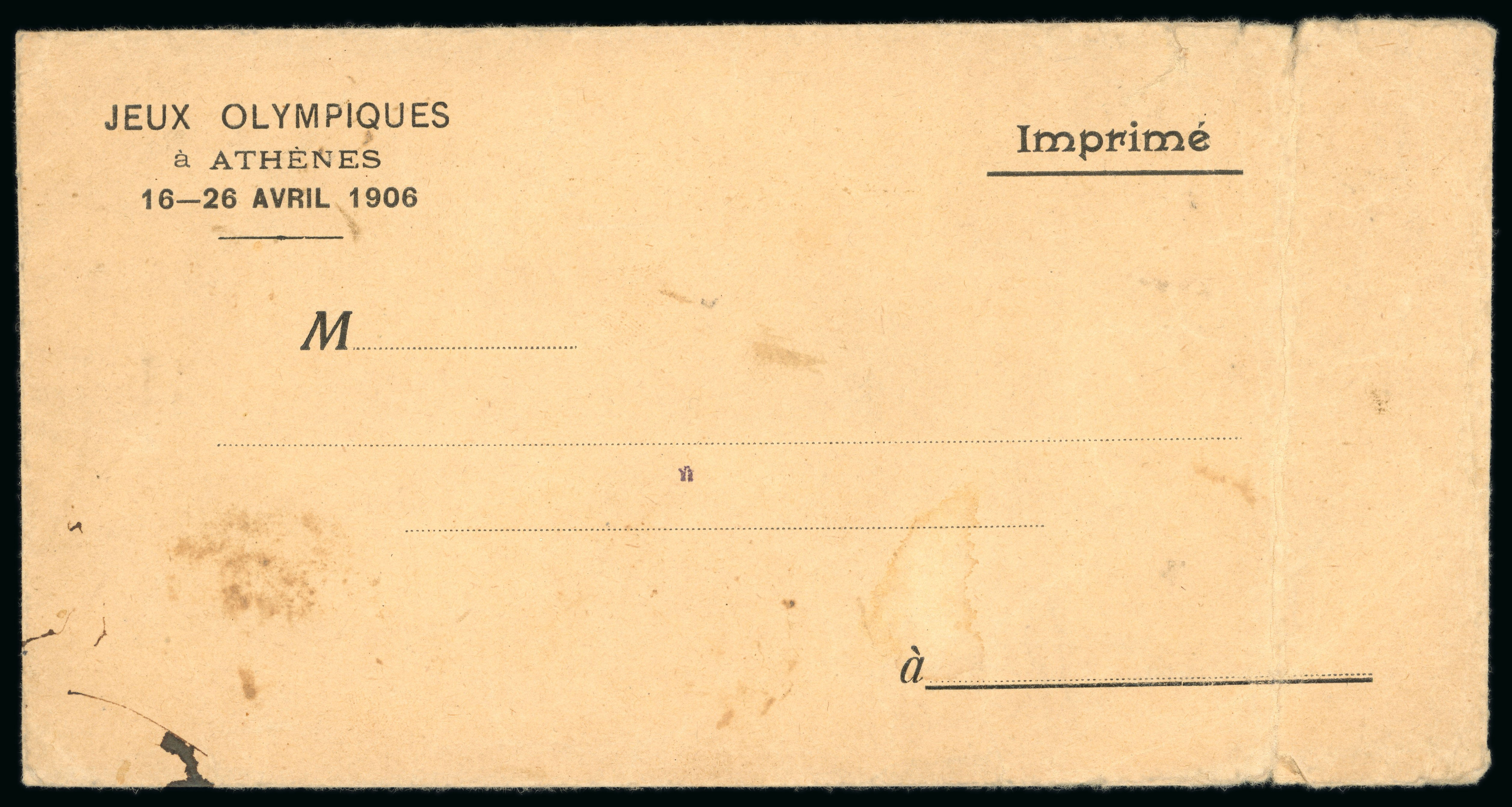 1906 (Febr) Printed 'Comité/ Des Jeux Olympiques/ A Athenes' envelope bearing single franking 25 Lepta Mercury to Berlin tied unclear cds, arrival backstamp also a rare printed 'Imprime' manila envelope headed Jeux Olympiques/ a Athènes/