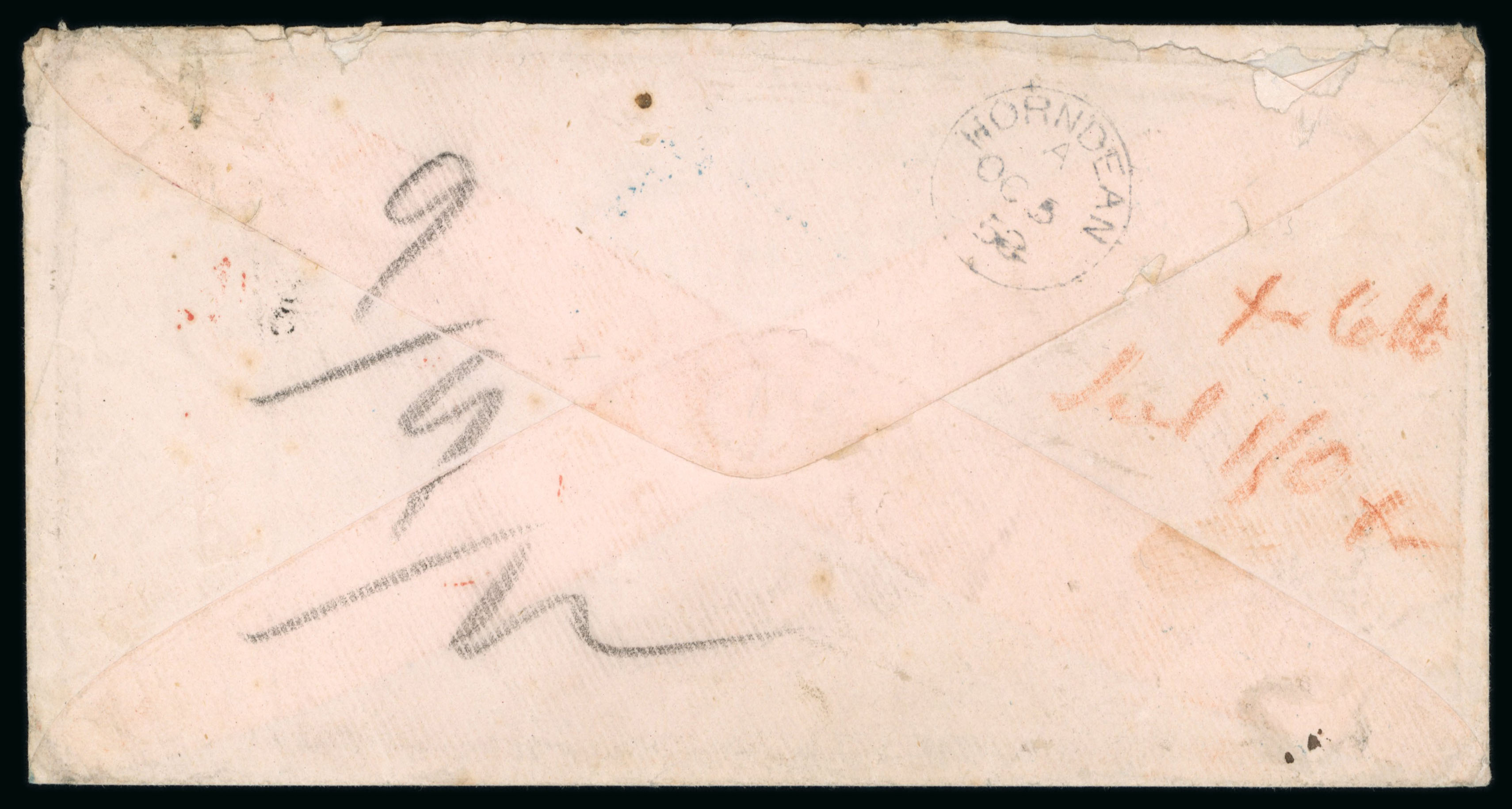 1845 (8 Nov) Mail to Great Britain: Soldier's concessionary entire "From Pte Charles Phillimore, 1st Battn Rifle Brigade" to his "brother" in London, the entire also being endorsed "Pre Paid" and signed by Officer, small black despatch