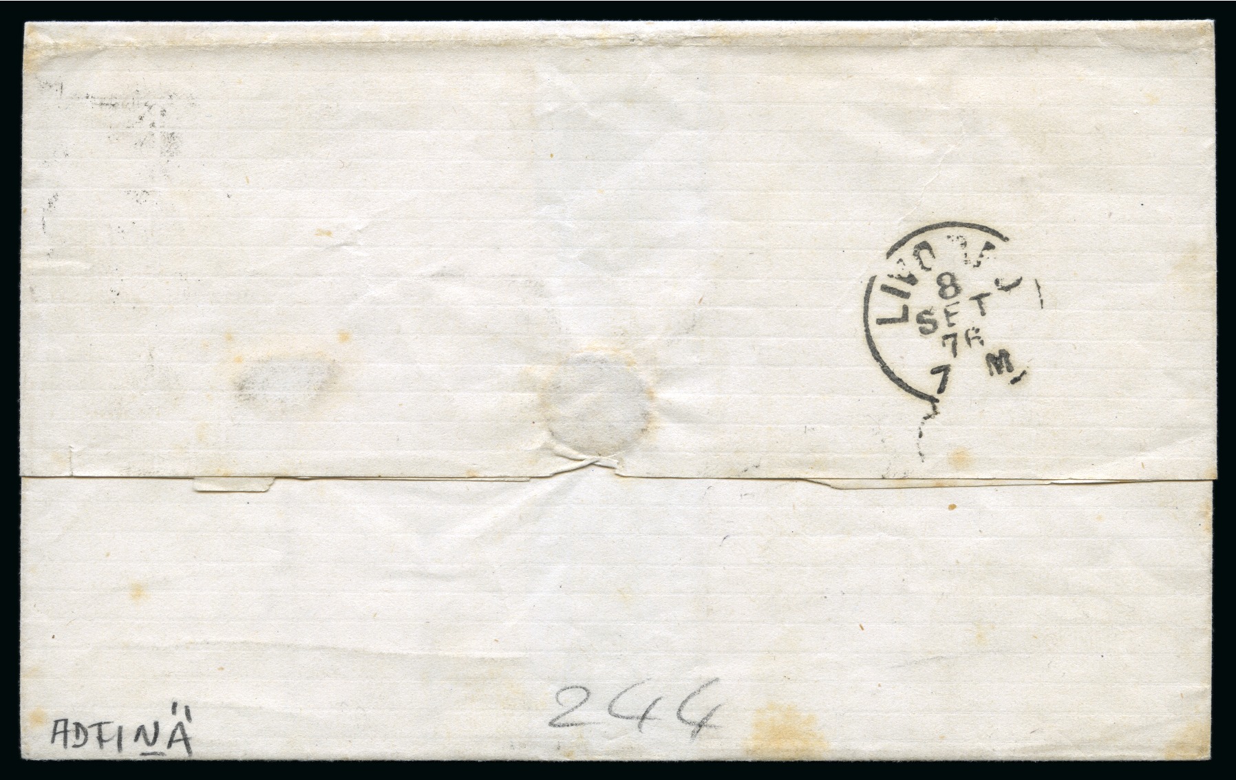 alongside, waxed seal on reverse and backstamped 16.3.79 and 18.3.79, two disinfection slits, stains for the seals, a rare registered usage. (Image 1)