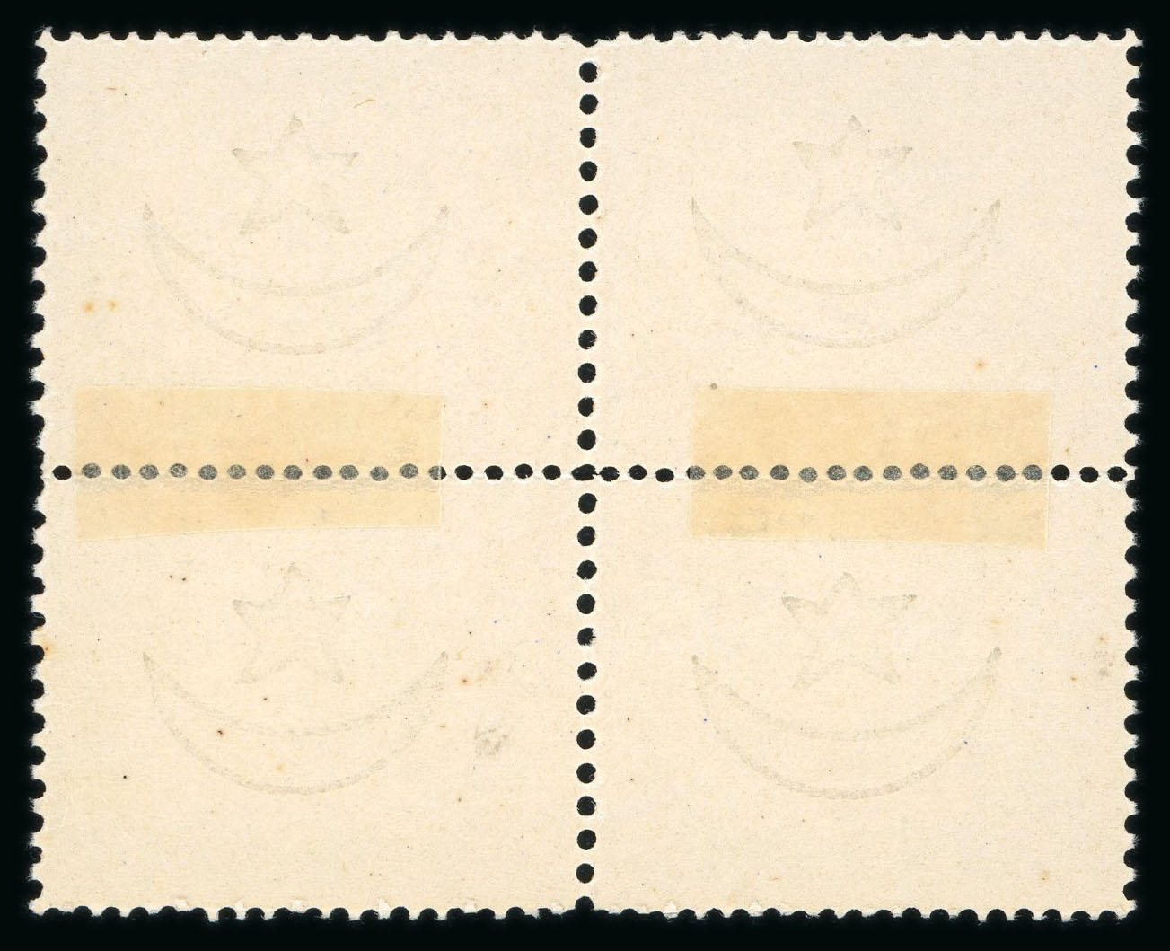 10pa Lilac, mint block of four, top left stamp shows "extra Arabic letter" plate flaw, heavy hinge remains, very fine and a scarce unused block with the plate variety; ex Peter Smith. (Image 1)