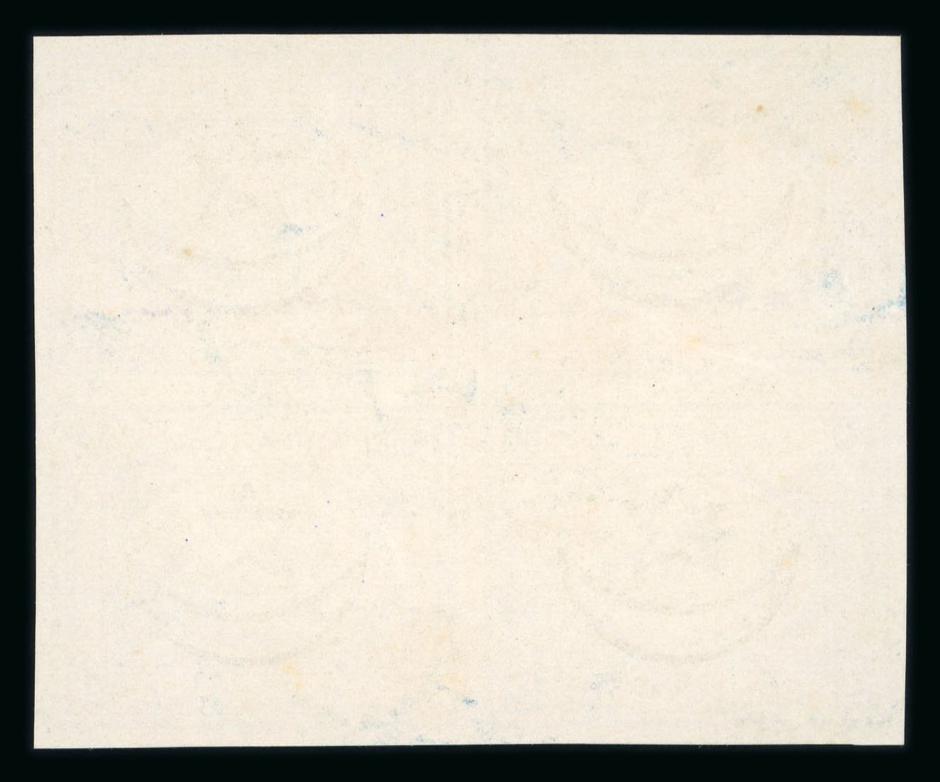 2pi bright blue, imperf. block of four, wmk impressed on reverse, no gum, a little faint wrinkling, fine and scarce (NP $1'600). (Image 1)