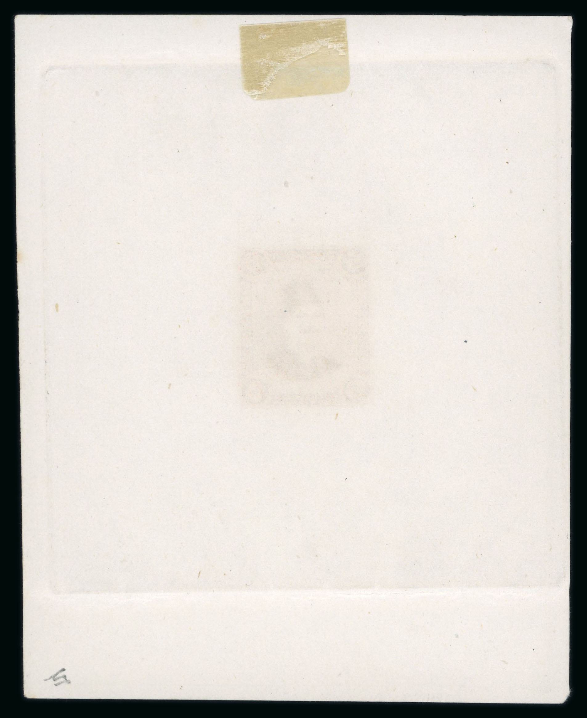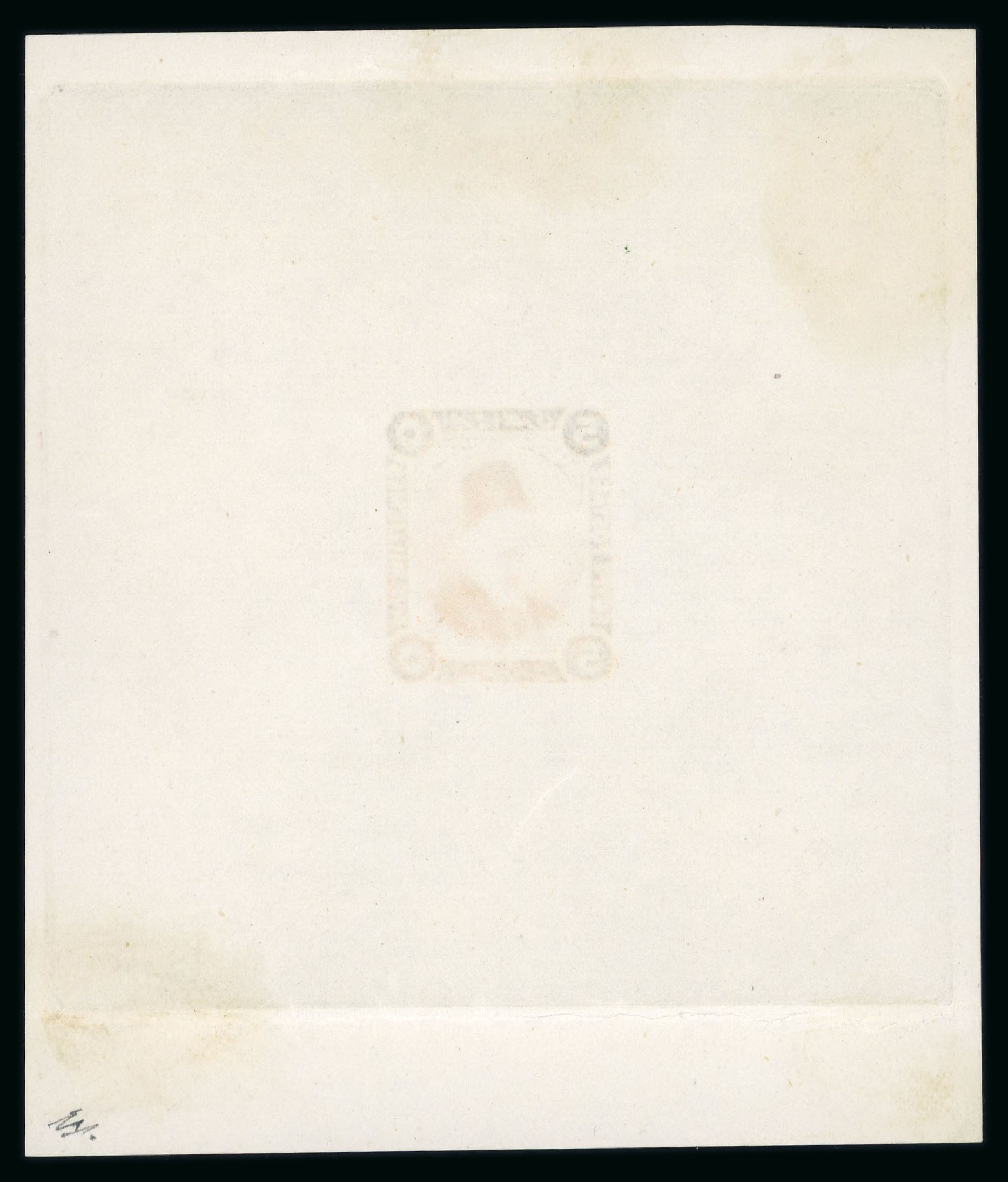 1922 Essays of Harrison & Sons: 5m Brown, affixed on attractive sunken die card, 76x94mm, attractive, very fine and very scarce. (Image 1)