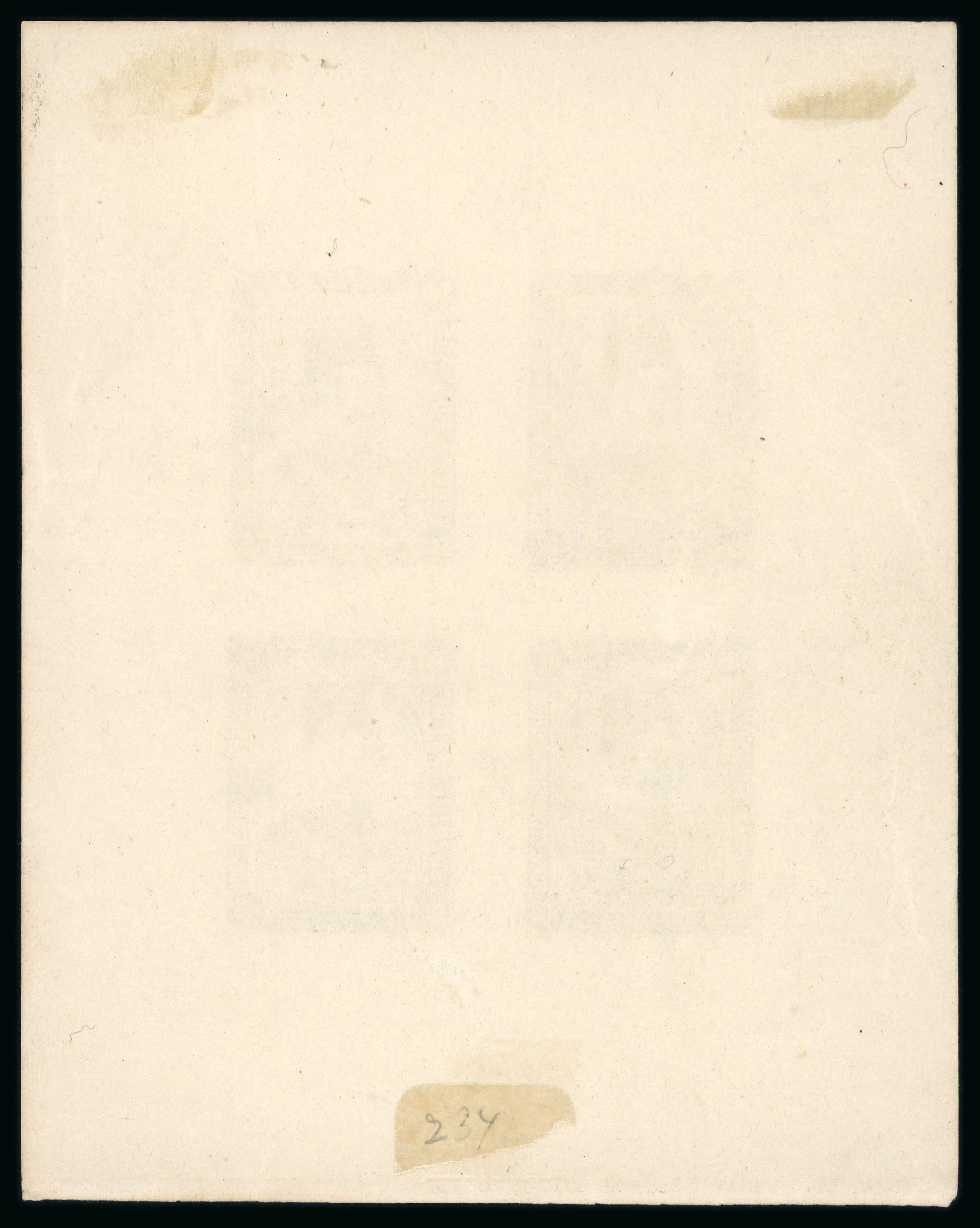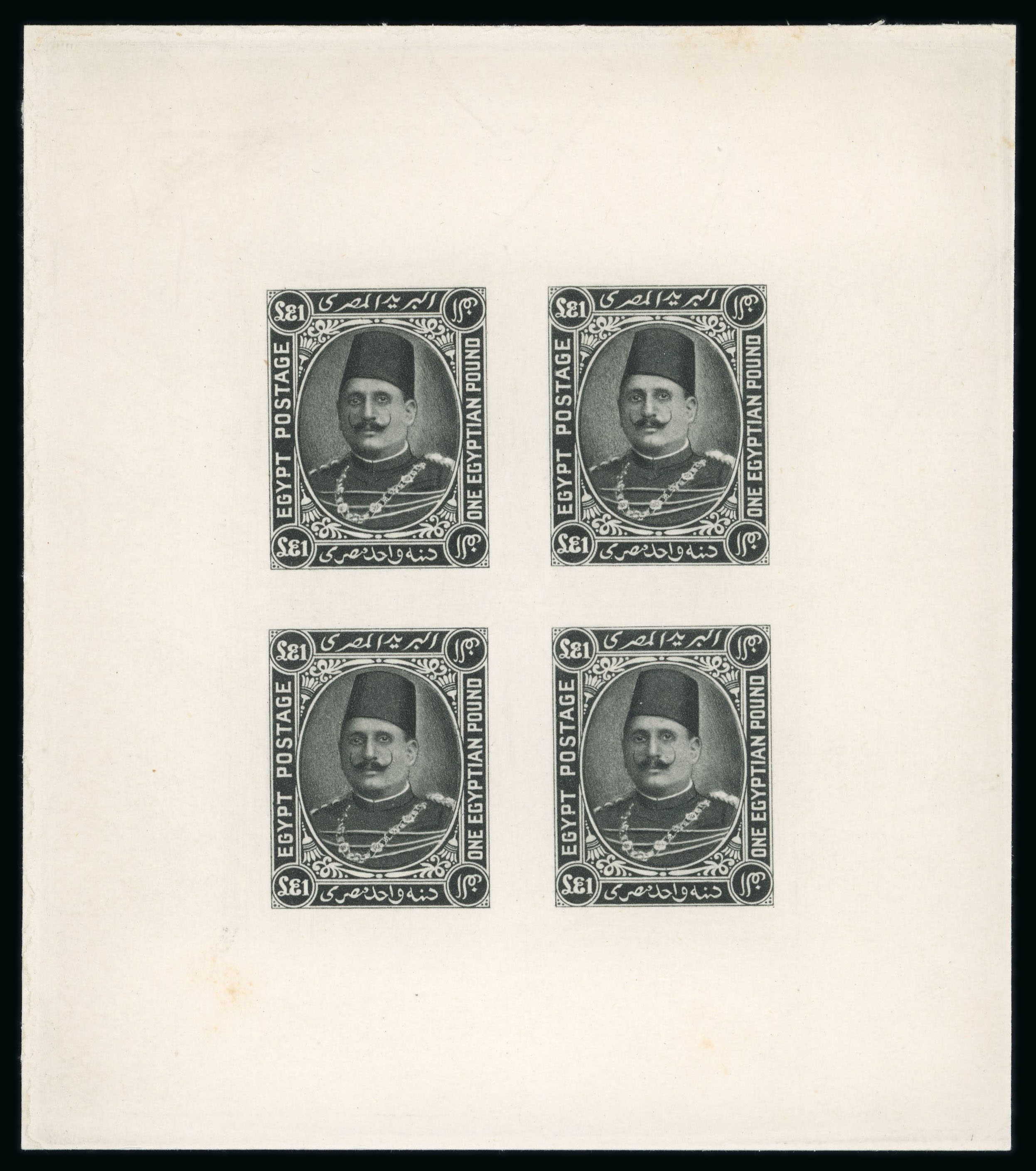 1922 Essays of Harrison & Sons: £E1 Black, imperforate sheetlet of four on ungummed paper, very fine, attractive, and extremely rare. (Image 1)