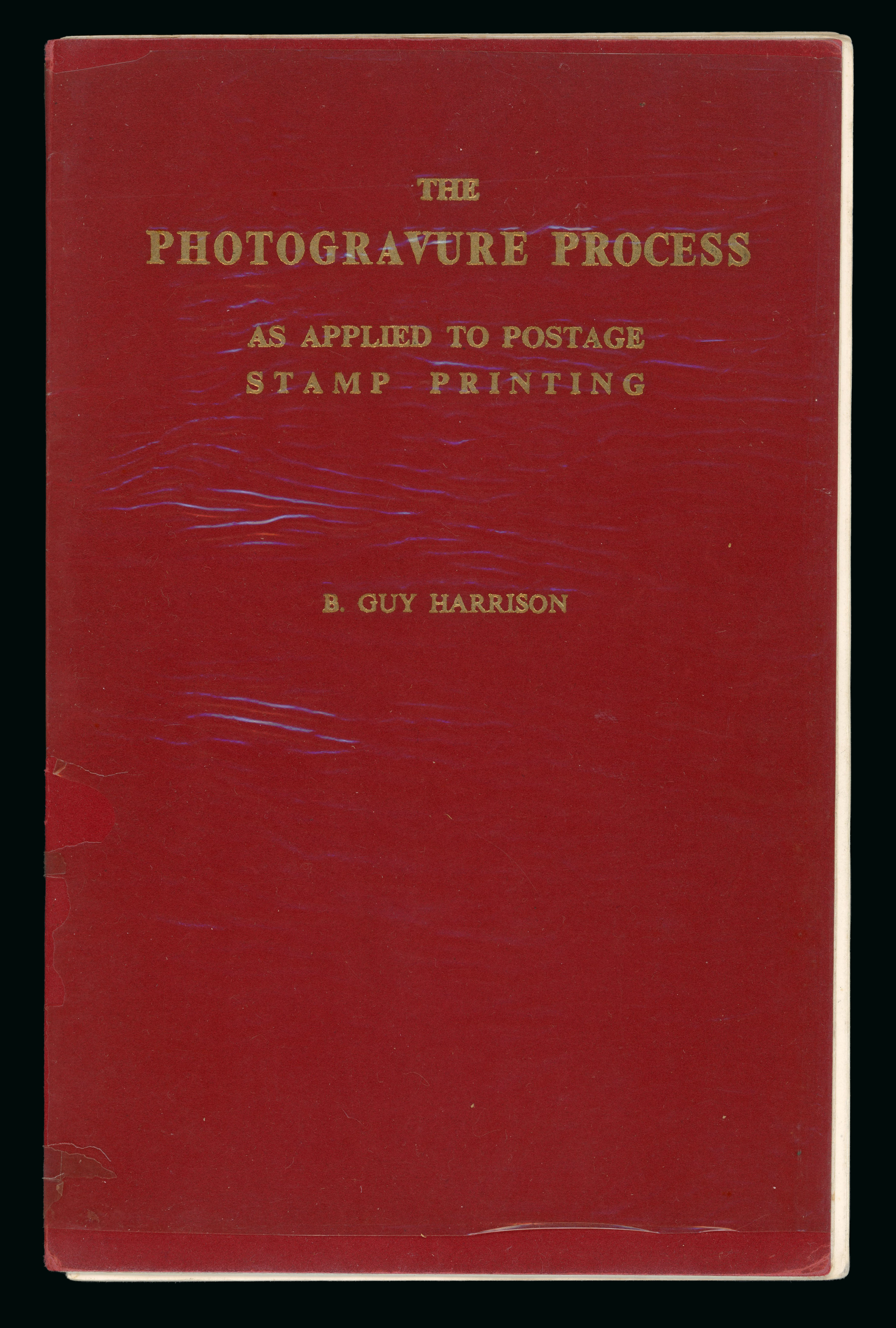 1923-24 First Portrait Issue 15m and 200m with "CANCELLED" type A overprint affixed into "The Photogravure Process as Applied to Postage Stamp Printing" by B. Guy Harrison, pp18, including other normal stamps and "CANCELLED"