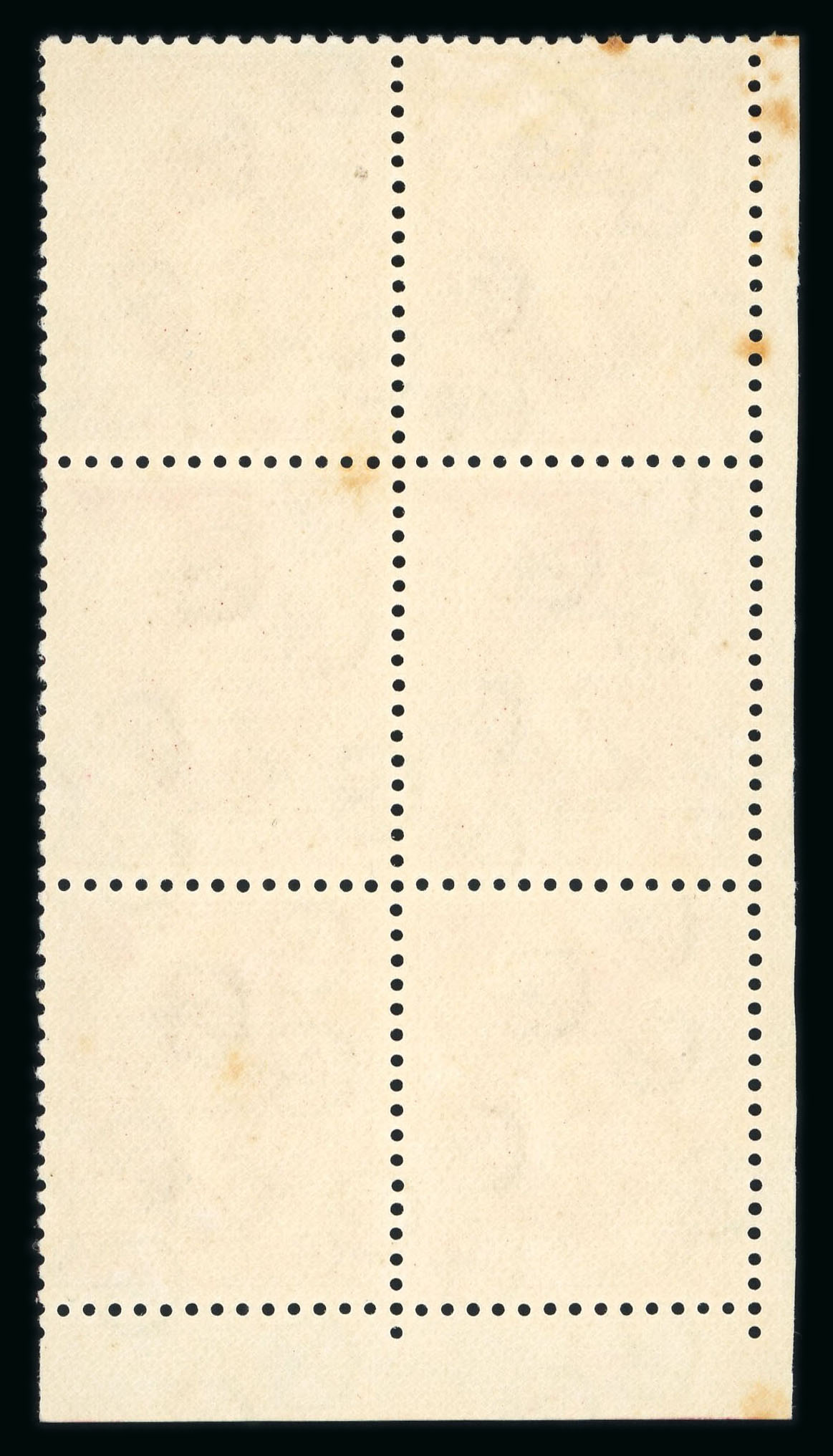 1923-24 First Portrait Issue 10m mint lower left block of six with control number missing, some foxing otherwise fine and scarce (NP $300). (Image