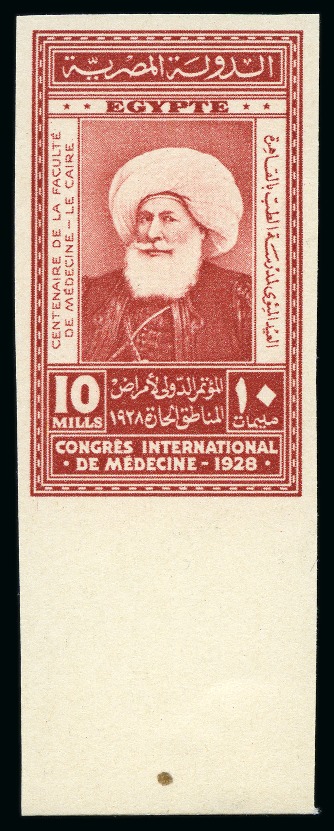 1928 Essays by the Survey Department for the International Medical Congress, two photographic essays of the 15m in blue with the Imhotep design issued as the 5m and the Mohamed Ali design issued as the 10m, slight traces of foxing,