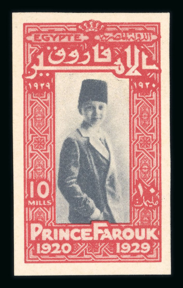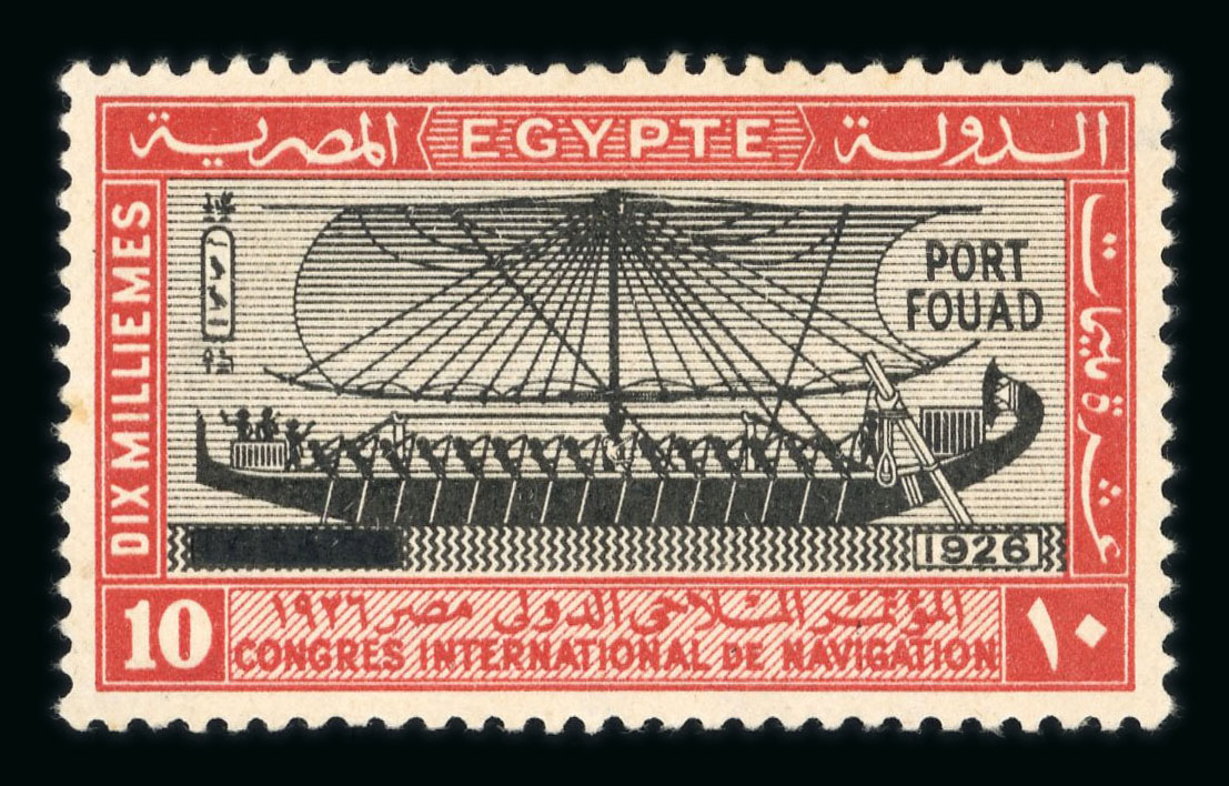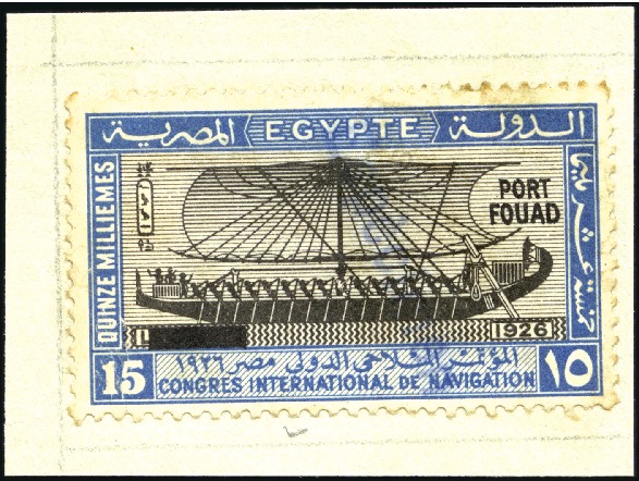1926 King Fouad's Birthday 50pi purple showing UPU COLONAIS overprint in blue, affixed to archive page piece, fine and extremely rare. (Image 1)