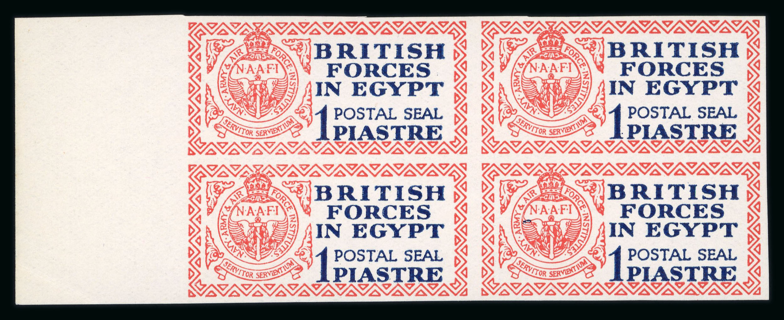 1936 Army Post 10m mint nh control block (A/38 A/39) of four with Royal oblique perforations, very fine and very rare as only two such control blocks exist. (Image 1)