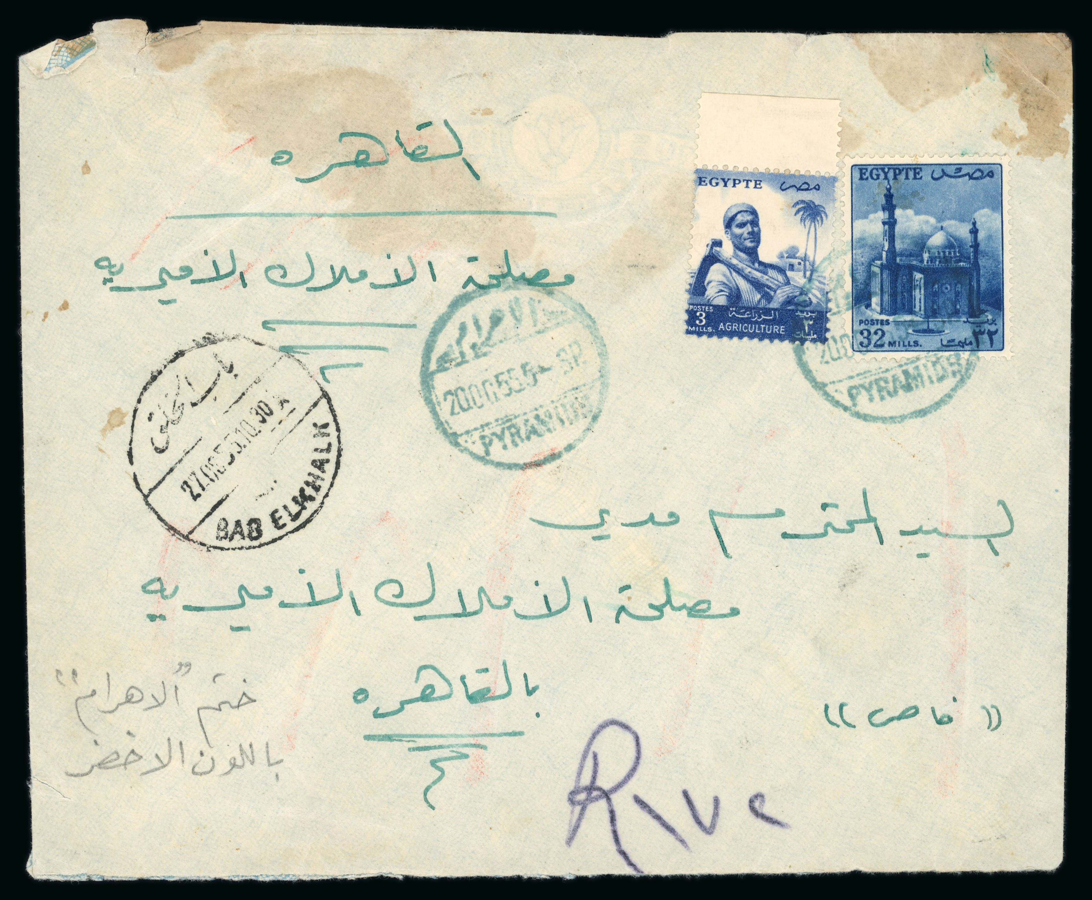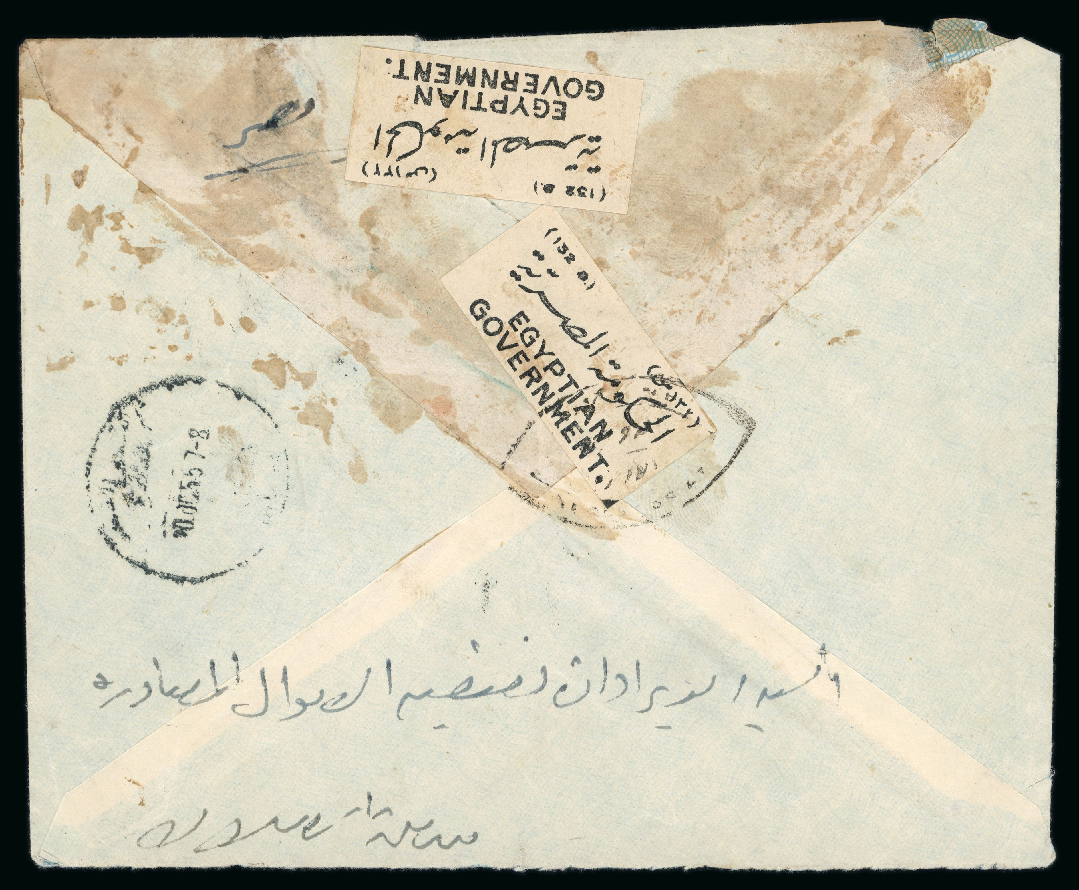 1941-55 Government Official Seal: Two items both with the usage of the black and white bilingual EGYPTIAN GOVERNMENT seals, an interesting pair; ex Peter Smith. (Image 1)