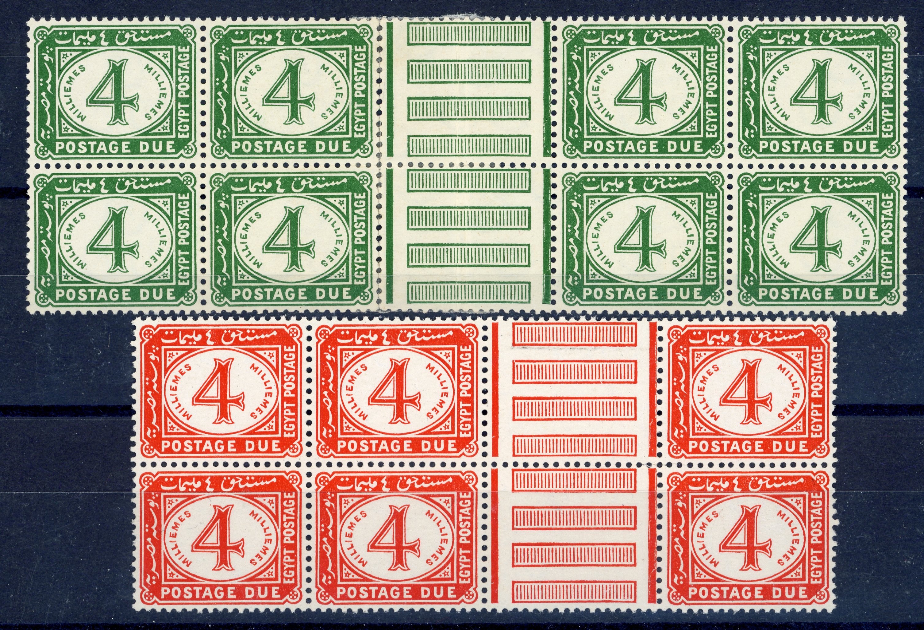 1921-22 4m scarlet and 4m green, mint gutter pairs in blocks of six and eight, fine. (Image 1)