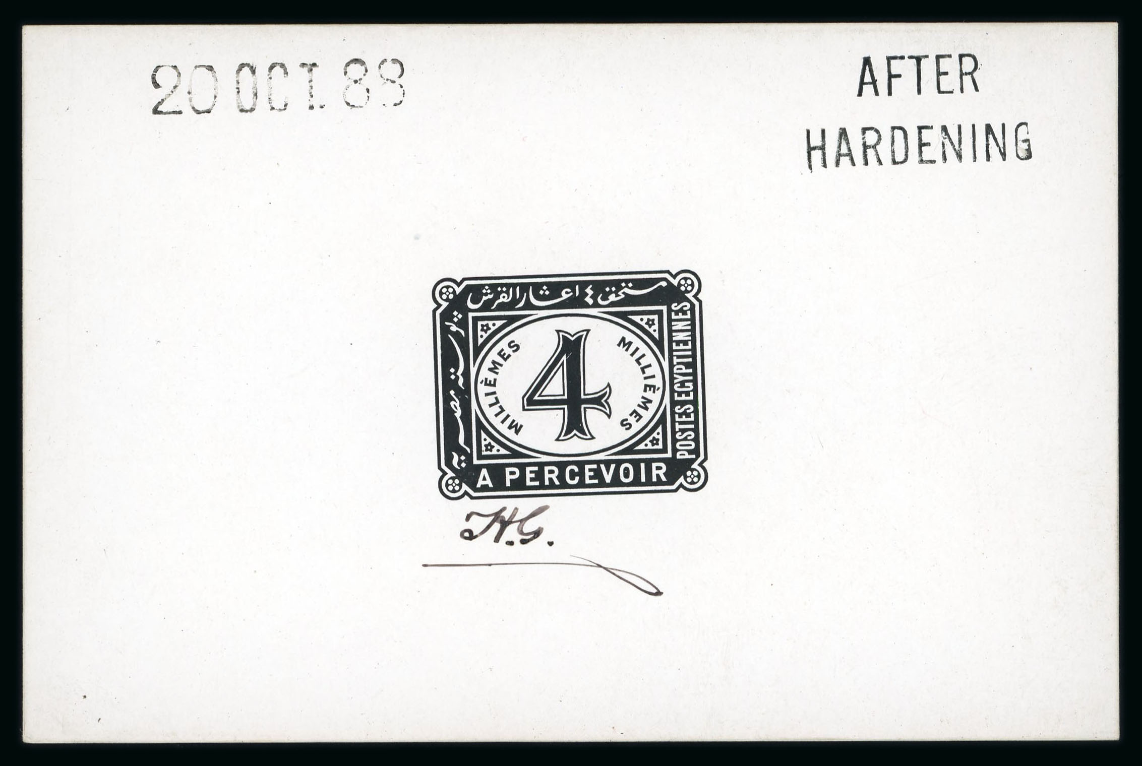 1889-1915 4m De La die proof in black, dated "20 OCT. 88" and with hs "AFTER HARDENING" alongside, signed in ink "H.G.", very fine and scarce. (Image