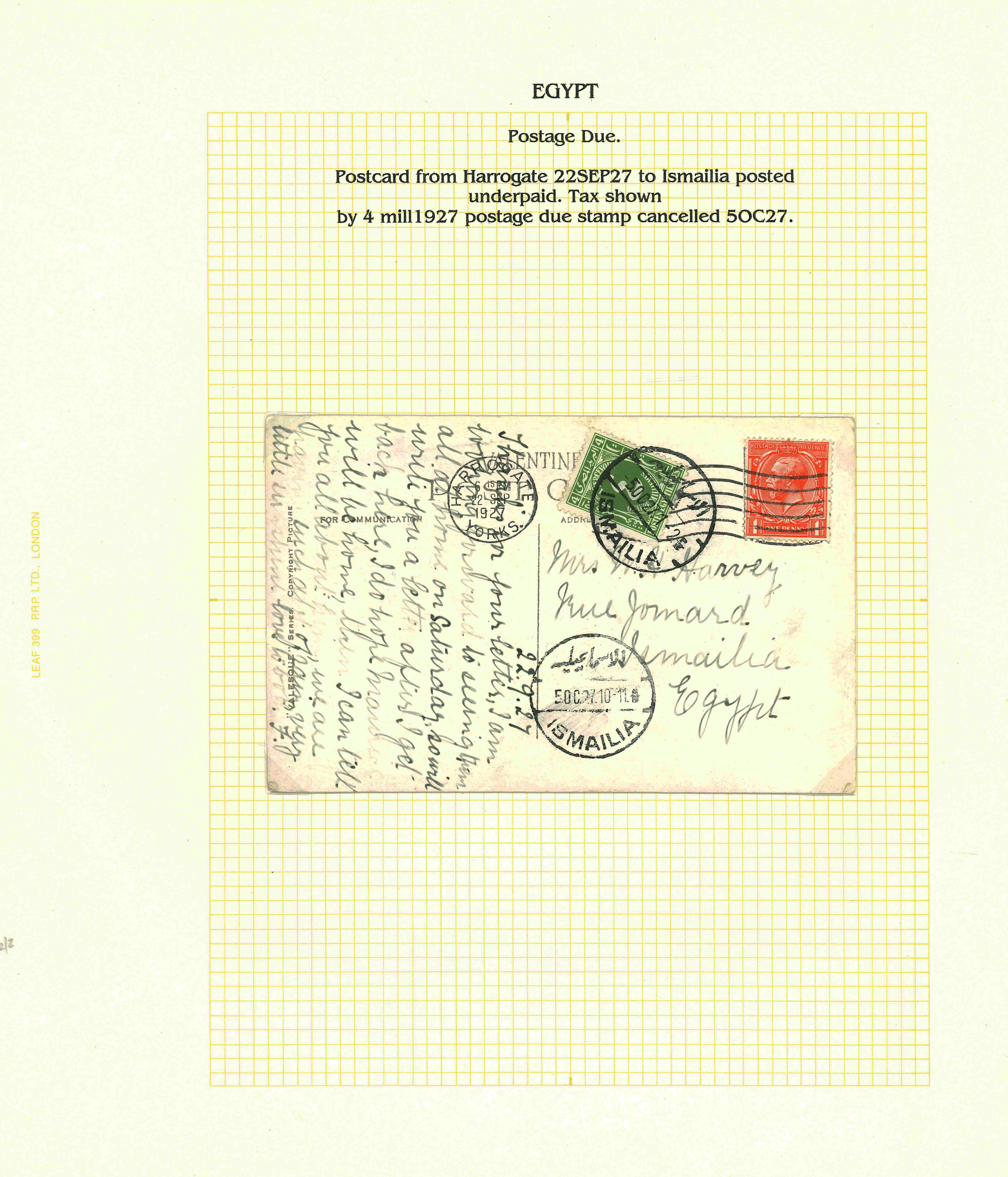 Consular Service: Essay by Harrison & Sons of London for the Consular Service. An imperforate bicolored stamp depicting King Fouad with a value of £E2, affixed on gold-edged card handstamped in purple, and the letter A. The portrait of