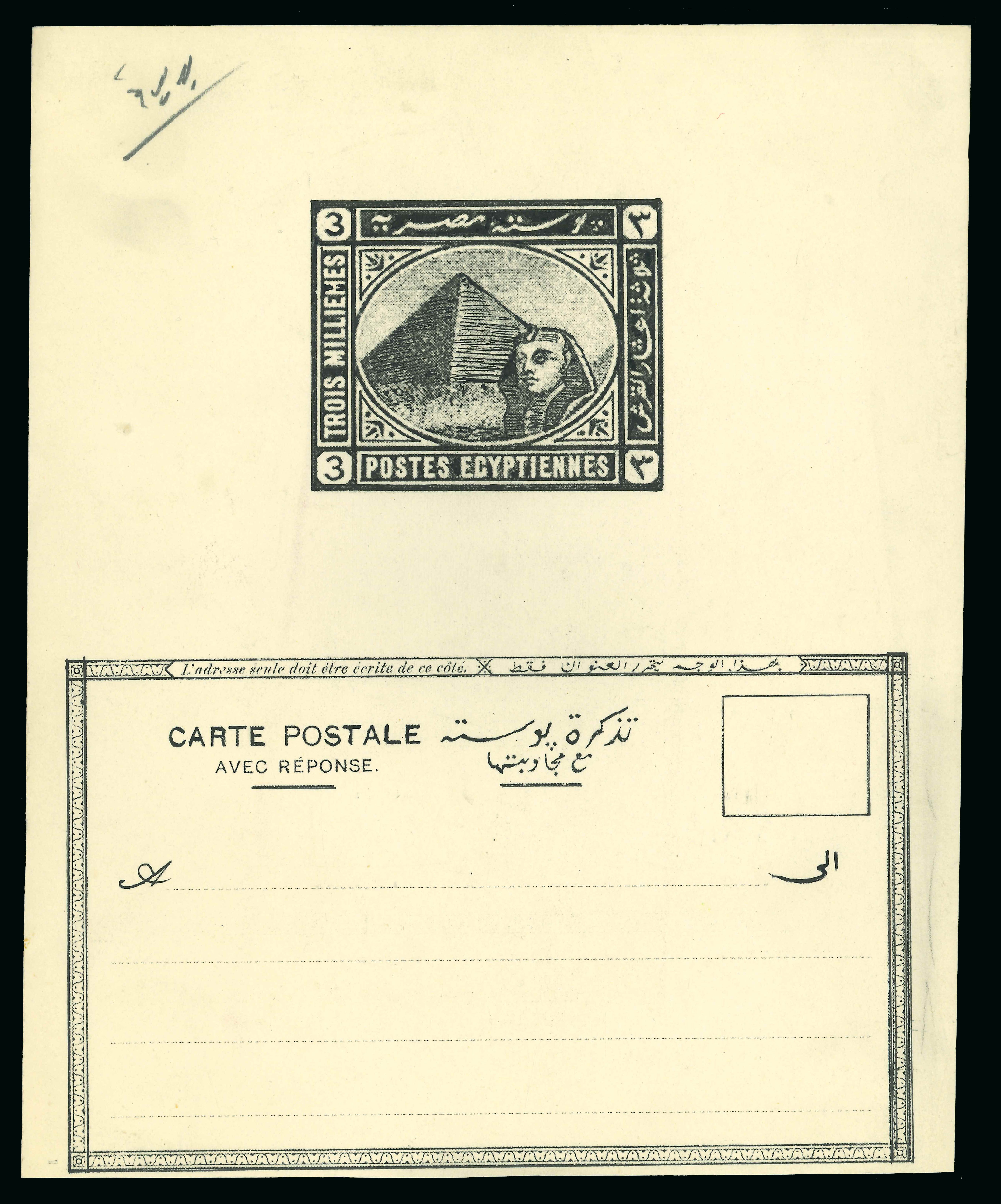 1894 Reply card 3m enlarge signed essay of the value cartouché and the card itself without the value, unusual and scarce (Image 1)