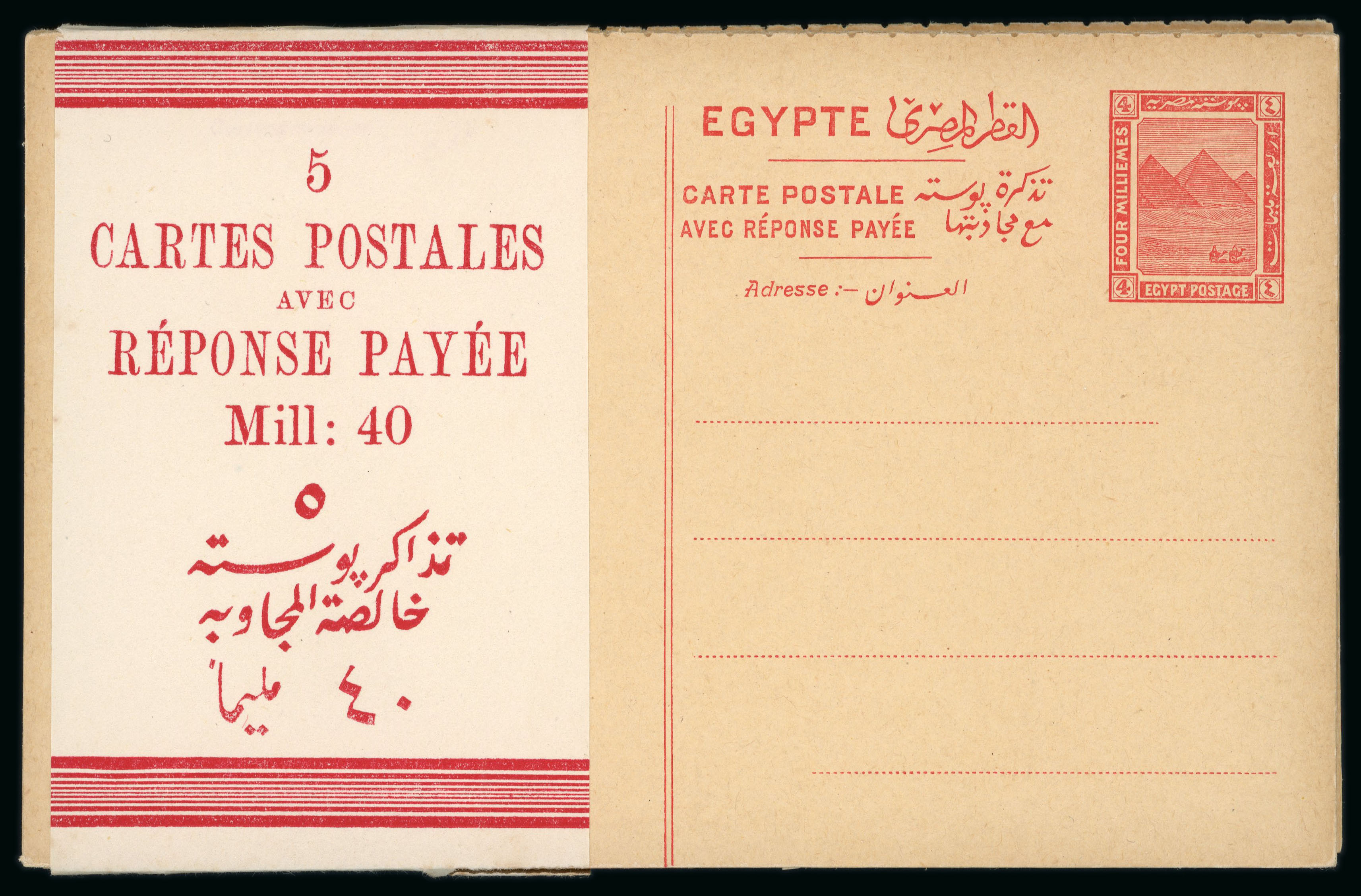 1914 Pictorial issue 2m+2m and 4m+4m prepaid reply cards in packs of five with their original wrapper band, fine and scarce with their bands intact. (Image 1)
