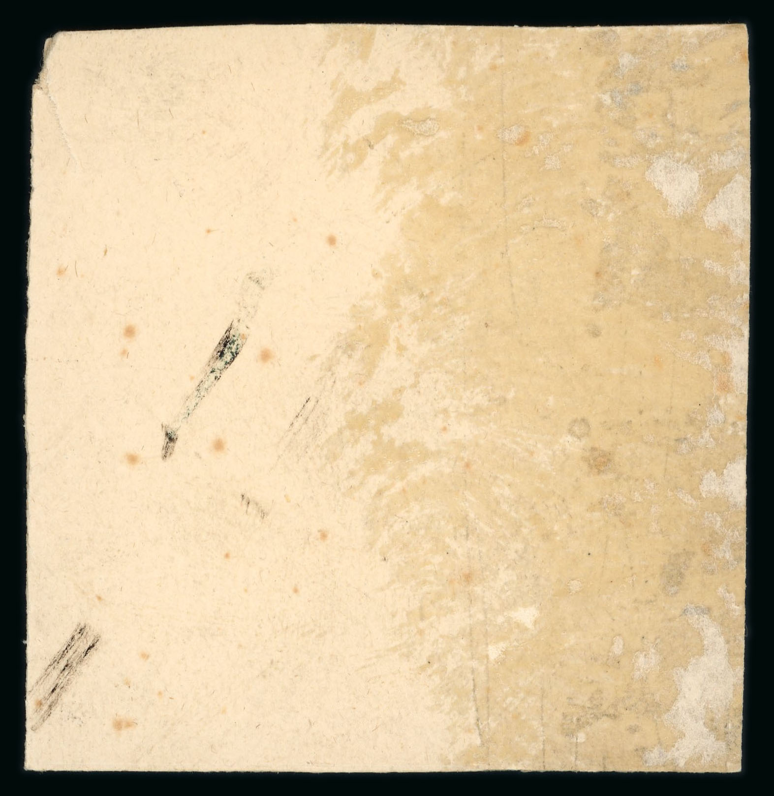 1885 Handpainted 50pi essay in green, on tracing paper, dated "DEC.18th.85" and numbered "12", tear and creased away from the design, an attractive and scarce handpainted essay, showpiece. (Image 1)