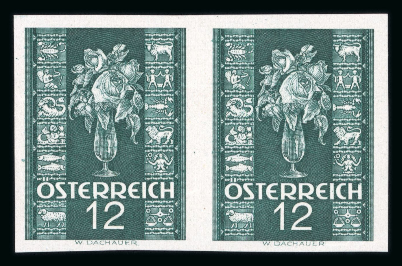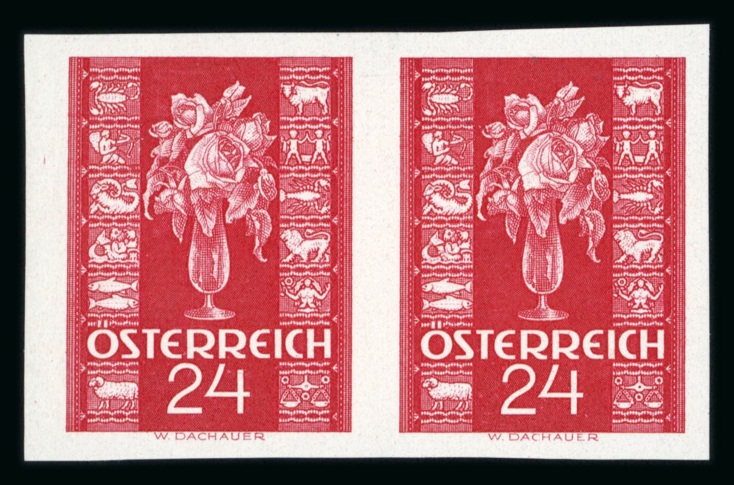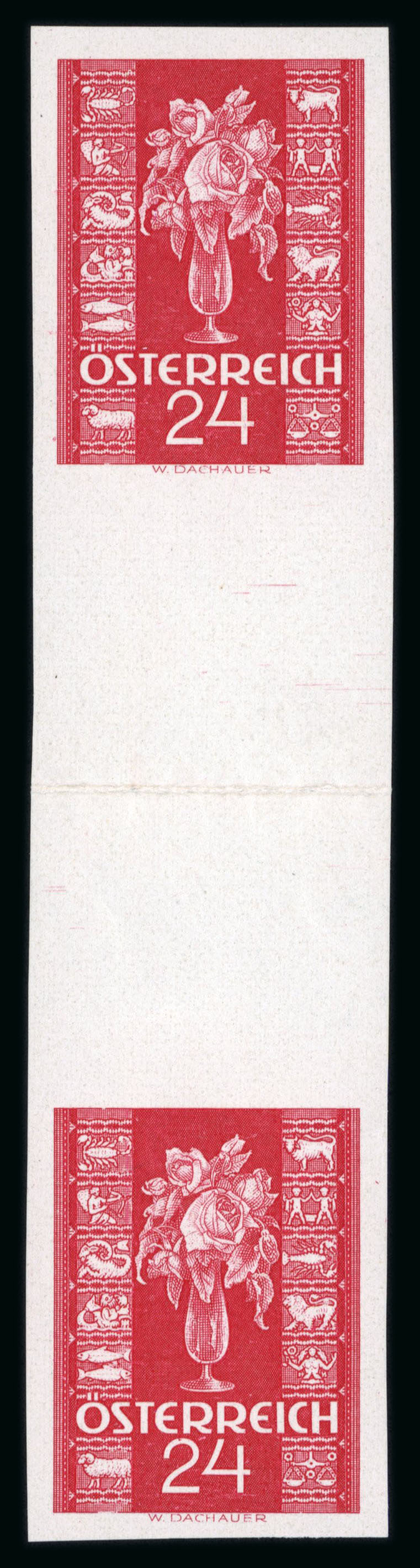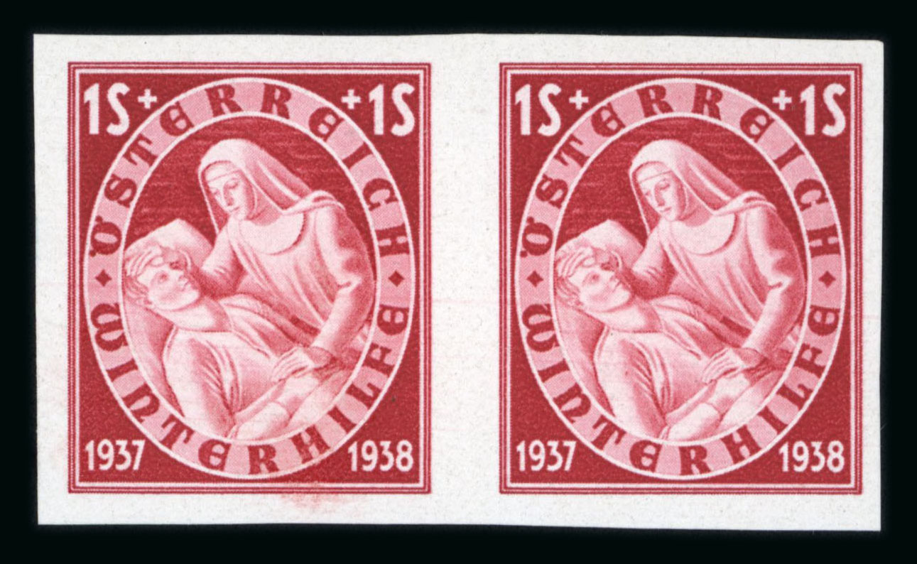 1937, Glückwunschmarken 12g und 24g, je in waagrechtem UNGEZÄHNTEN Paar, postfrisch, Attest Soecknick, ANK und Mi 658U-59U. (Image 1)