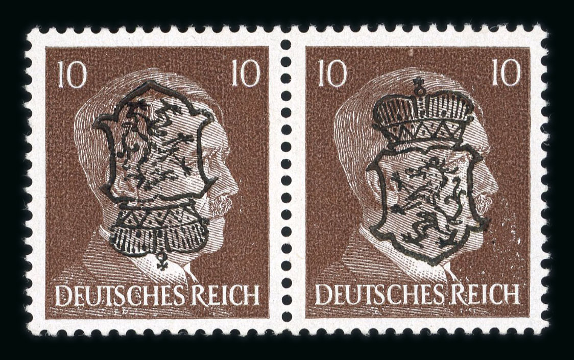 1945, GRAZ, sogenannte Pantherausgabe, Lot mit Aufdruckabarten, kopfstehende Aufdrucke, Doppelaufdrucke und waagrechtes Paar der 10 Rpf mit tete-beche-Aufdruck, alle Werte postfrisch, 5 Atteste bzw. Befunde Sturzeis VÖB, KW ca. 800€. (Image 1)