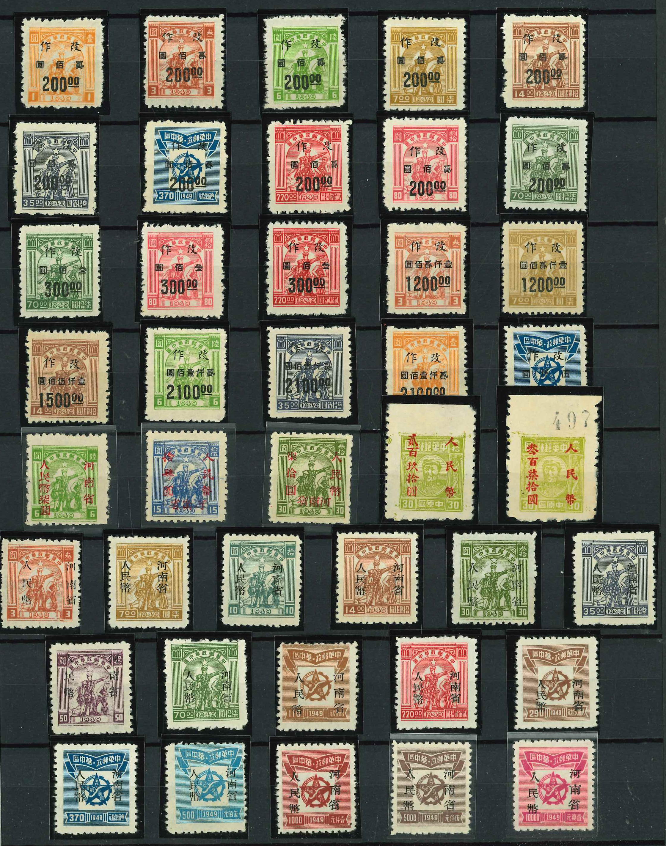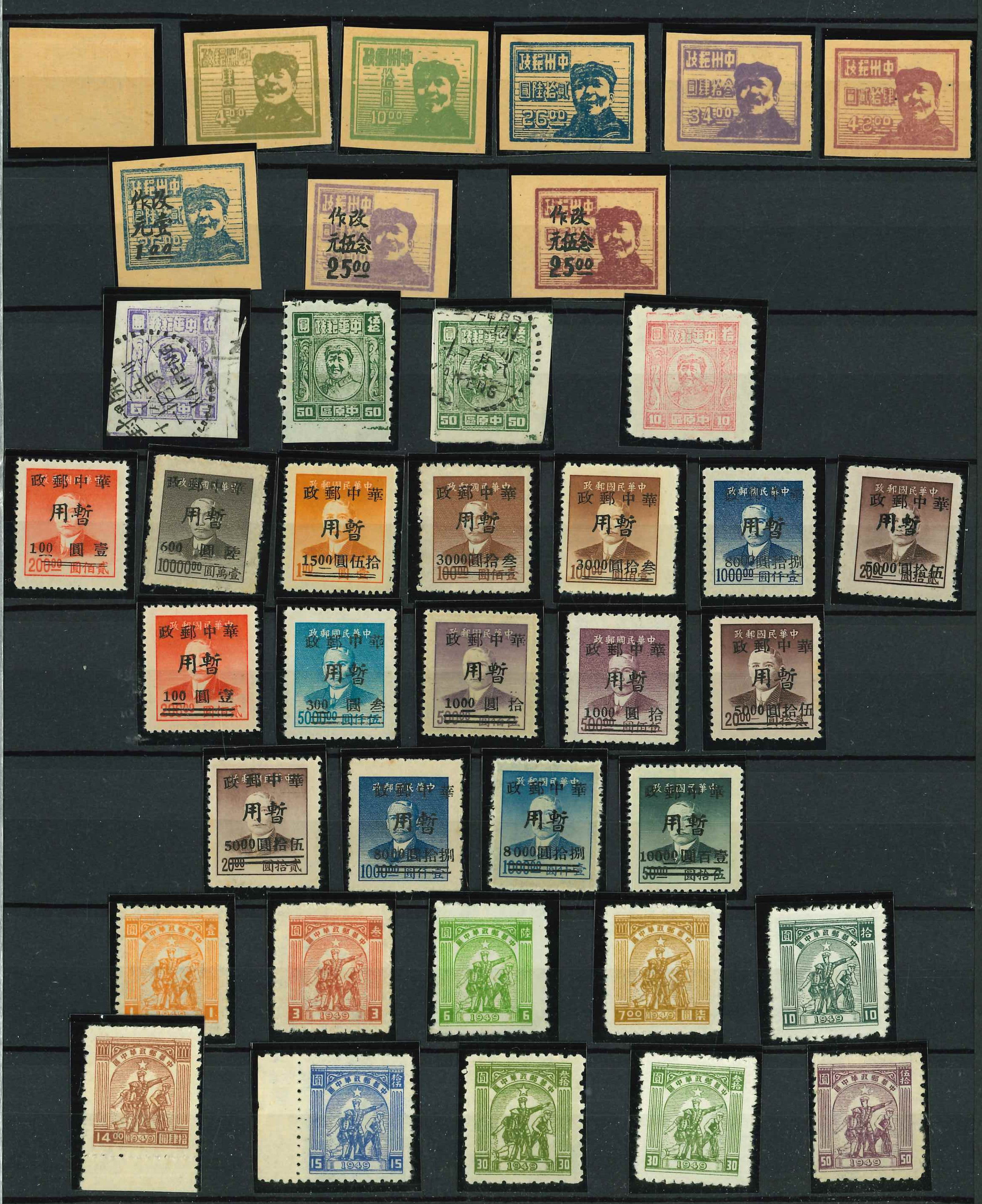 1946-1949 East China Jiangsu-Anhui Border Area; selection of better unused stamps on large stock card. (Image 1)
