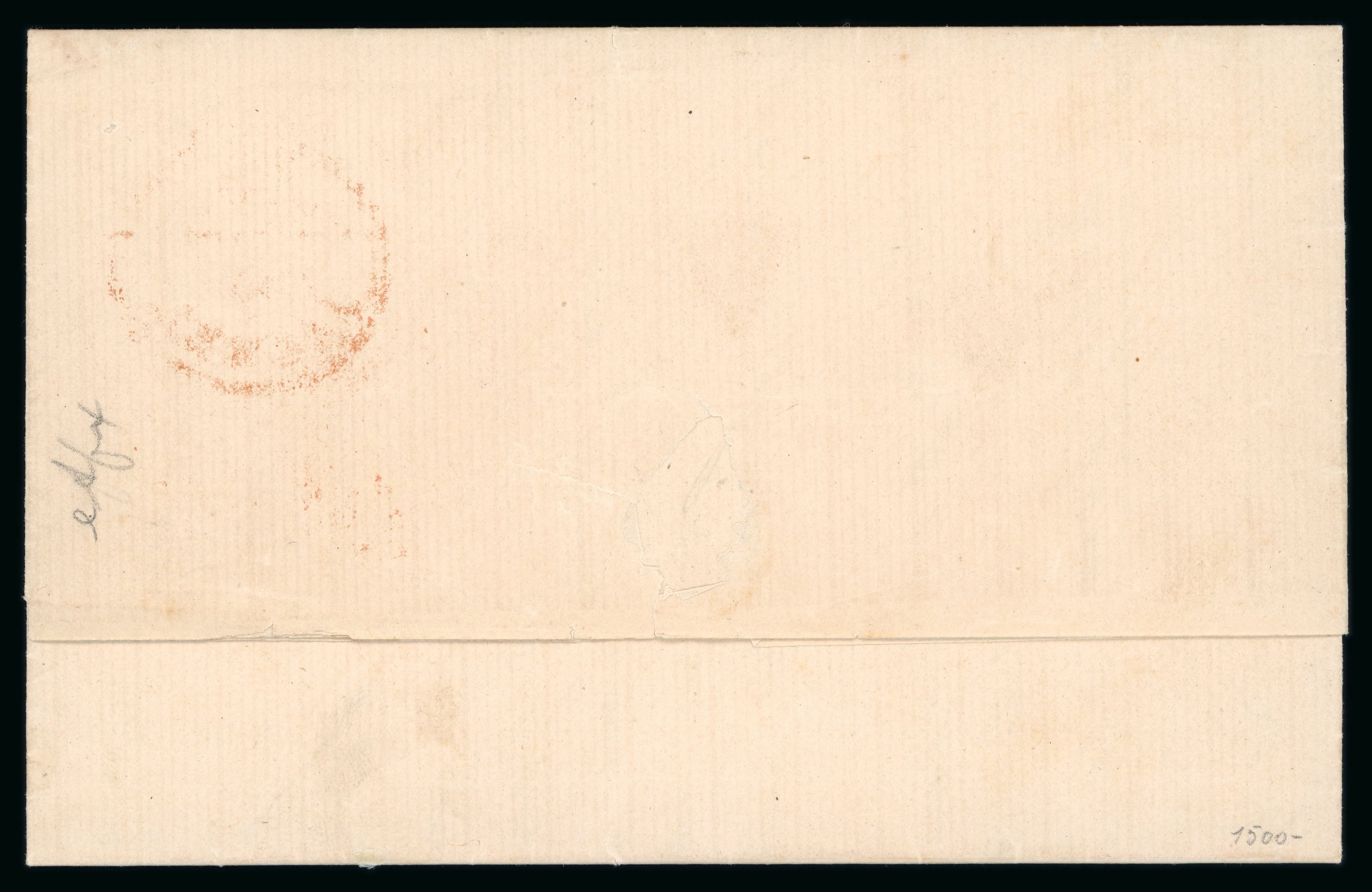 date and arrival backstamp of the following day. Light vertical filing crease at left with some minor discolouration along it, still of fine appearance, late usage, the agency ceasing at the end of June. (Image 1)