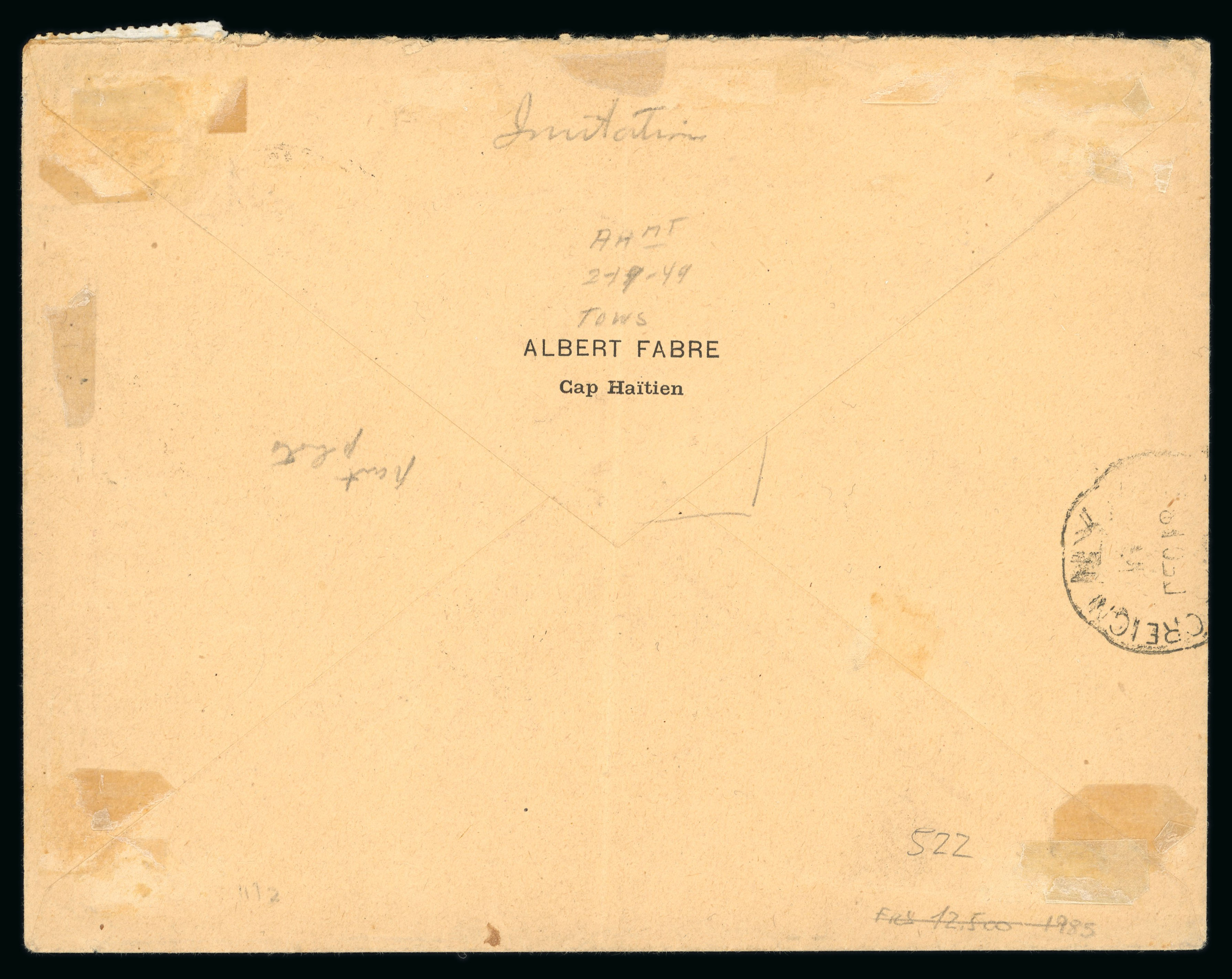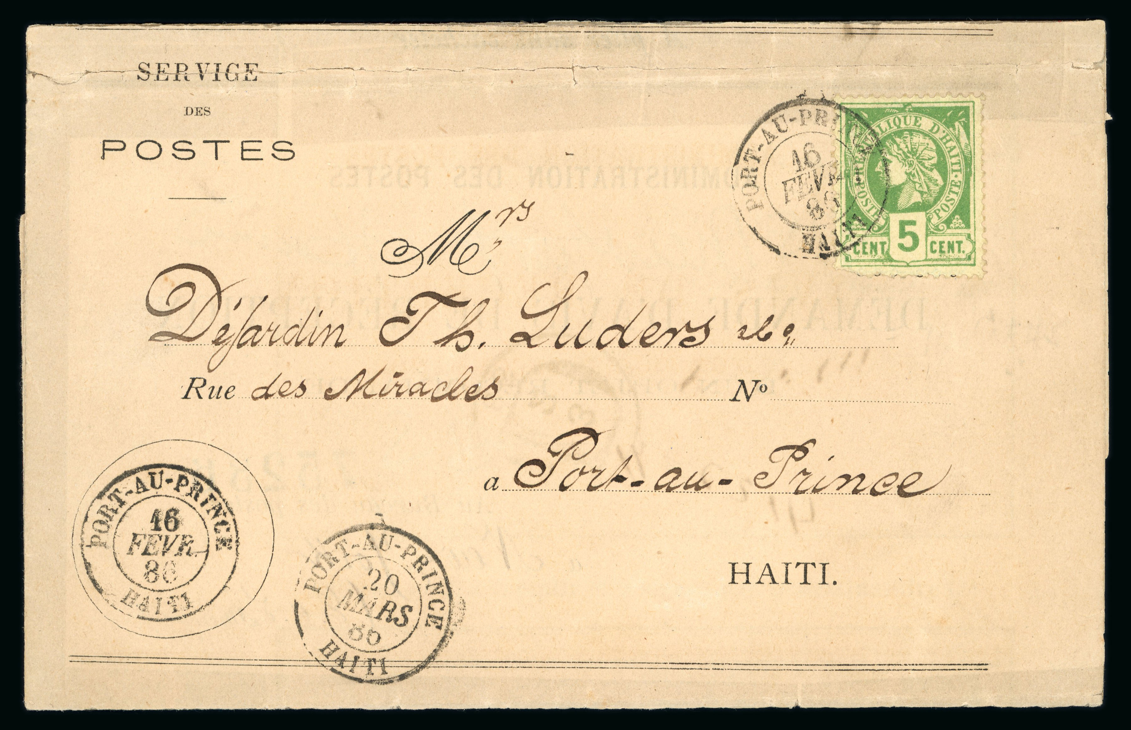 1881 (10 Dec) 'Administration Generale Des Postes D'Haiti' printed envelope to Luxembourg bearing single franking imperforate 2c purple tied somewhat unclear Port Au Prince cds. An extremely rare foreign printed matter rate cover and the