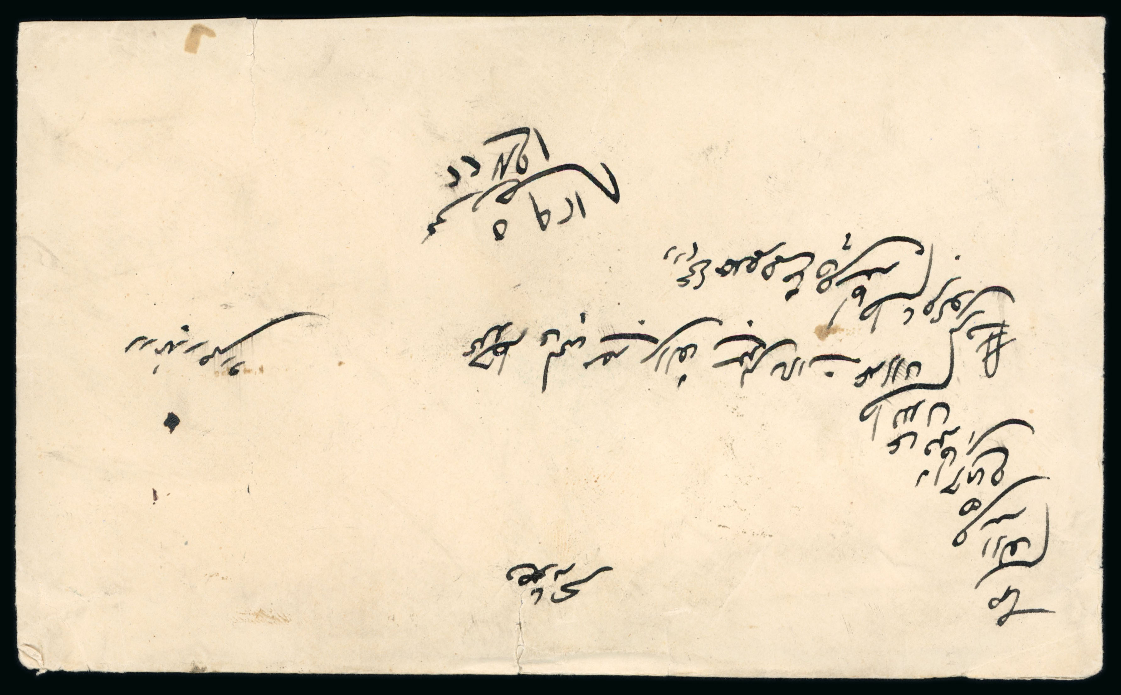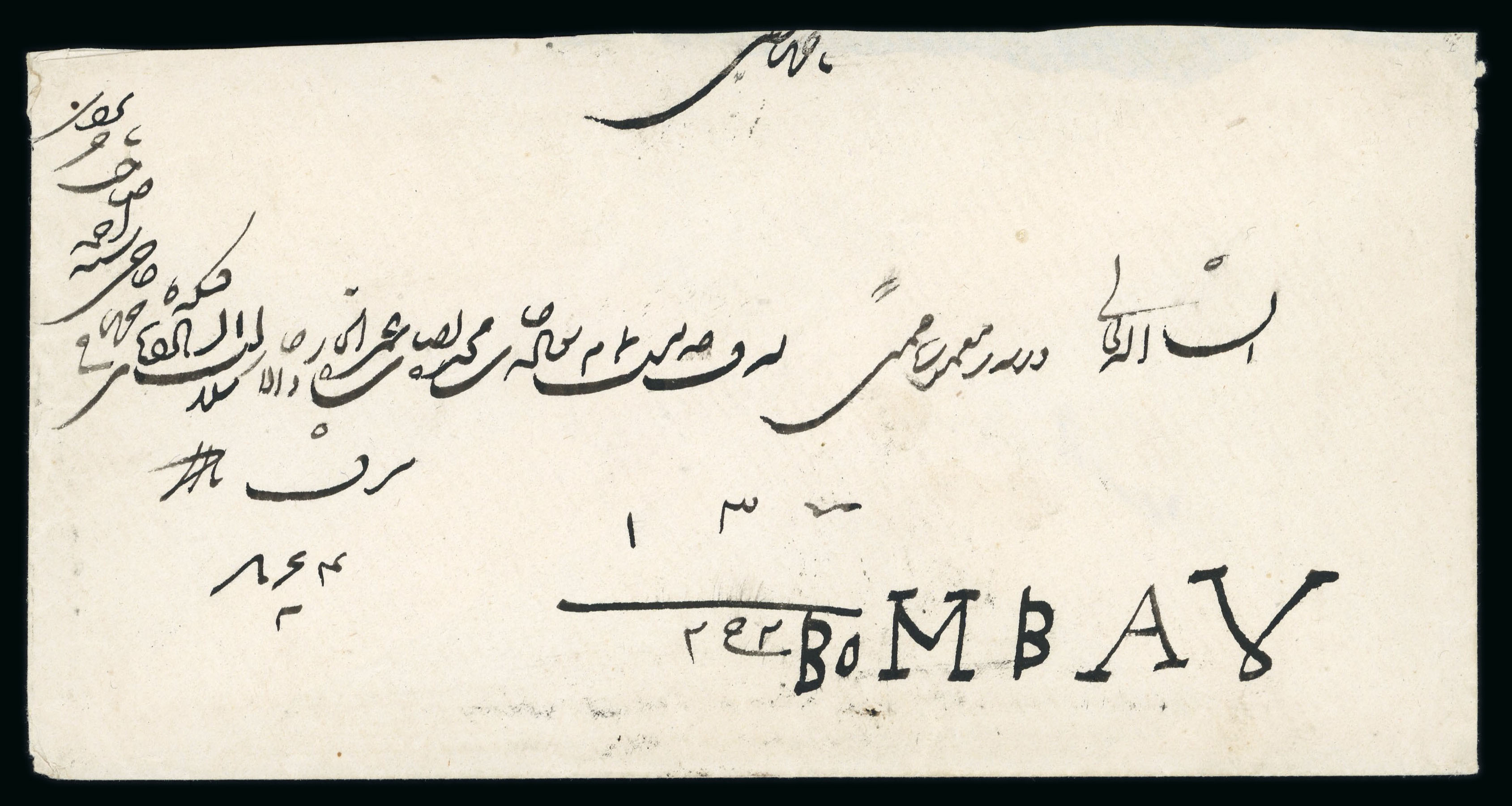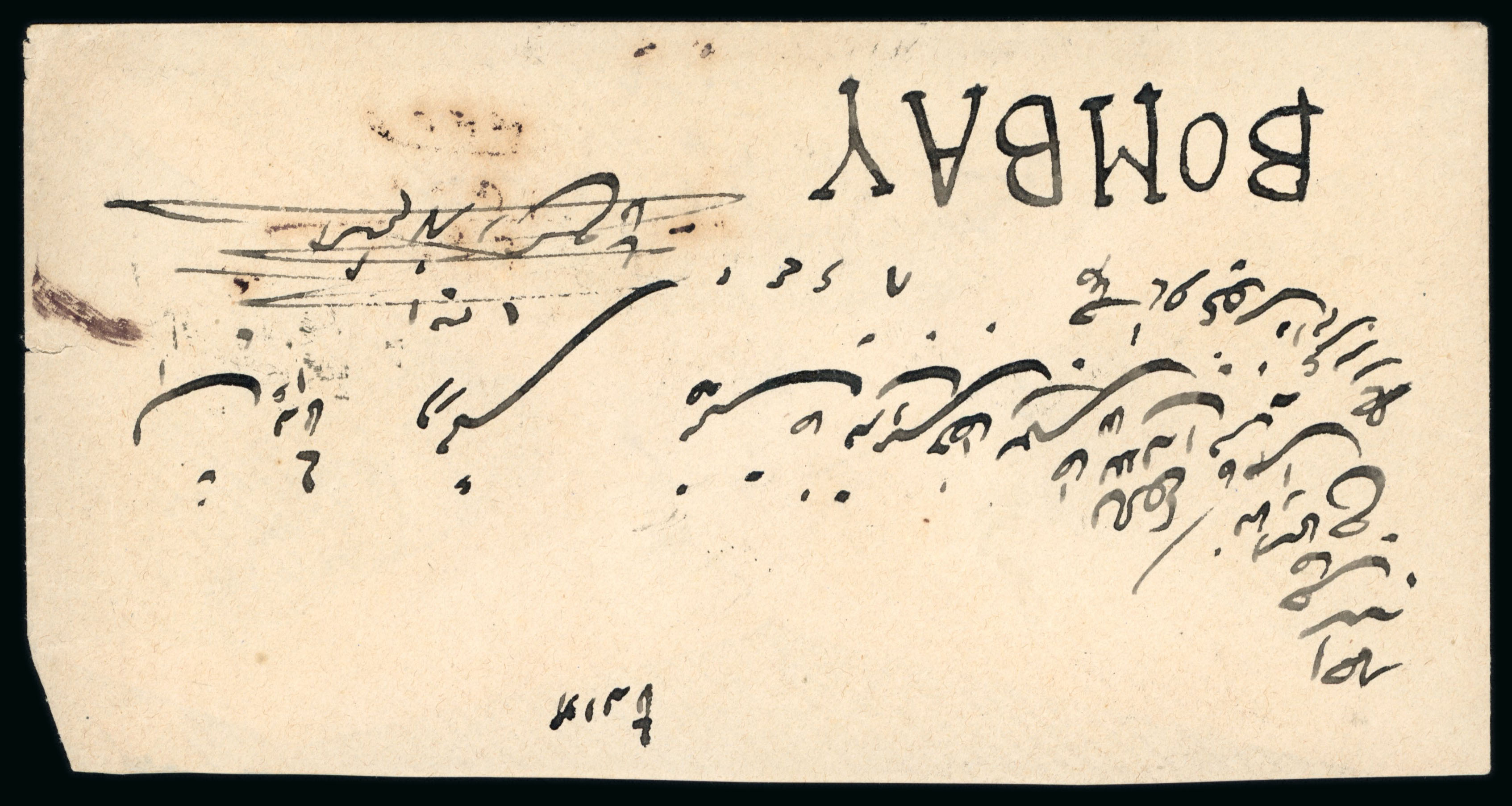 Bandar-Abbas: 1880s, letter to Bombay bearing on back 1873 1/2 anna blue die II, tied by B in square grid and alongside Bandar-Abas Sep 9. Also on back is Bombay receiver Sep 18. A very attractive and tidy small envelope with very well