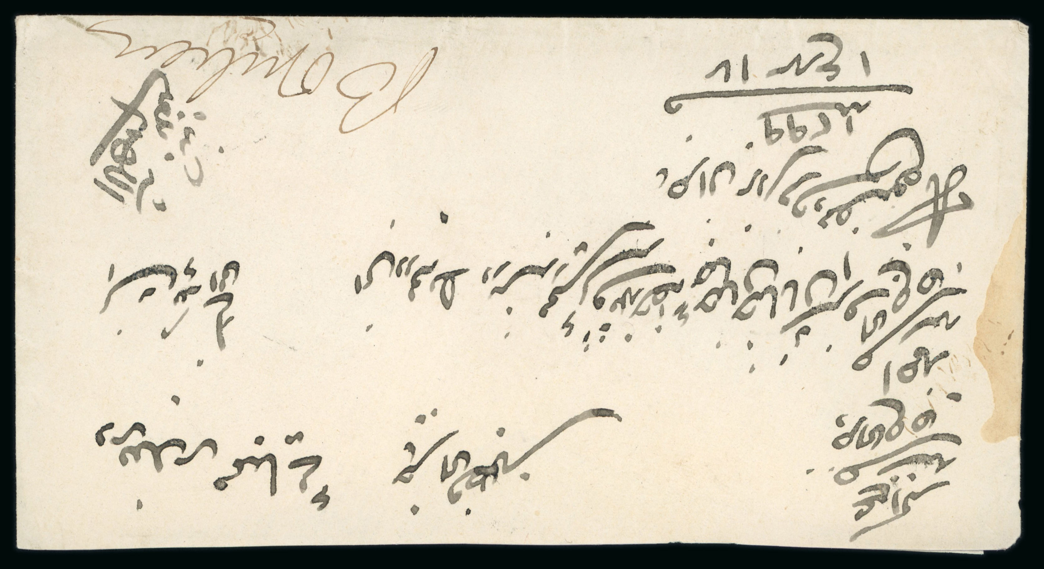 of the duplex Bashir postmark; some minor browning to the back and a rounded edge to envelope. (Image 1)