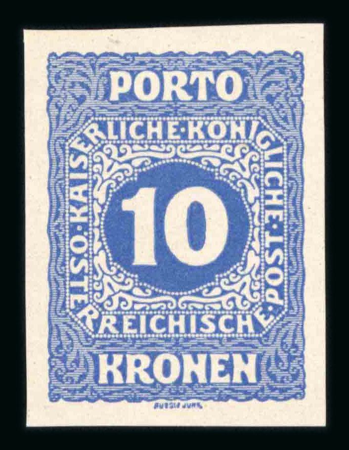 1916, Neue Ziffernzeichnung, 10K als ungezähnter EINZELABZUG in schwarz, sign.Wallner und Ferchenbauer, ANK 57PU II, €350. (Image 1)