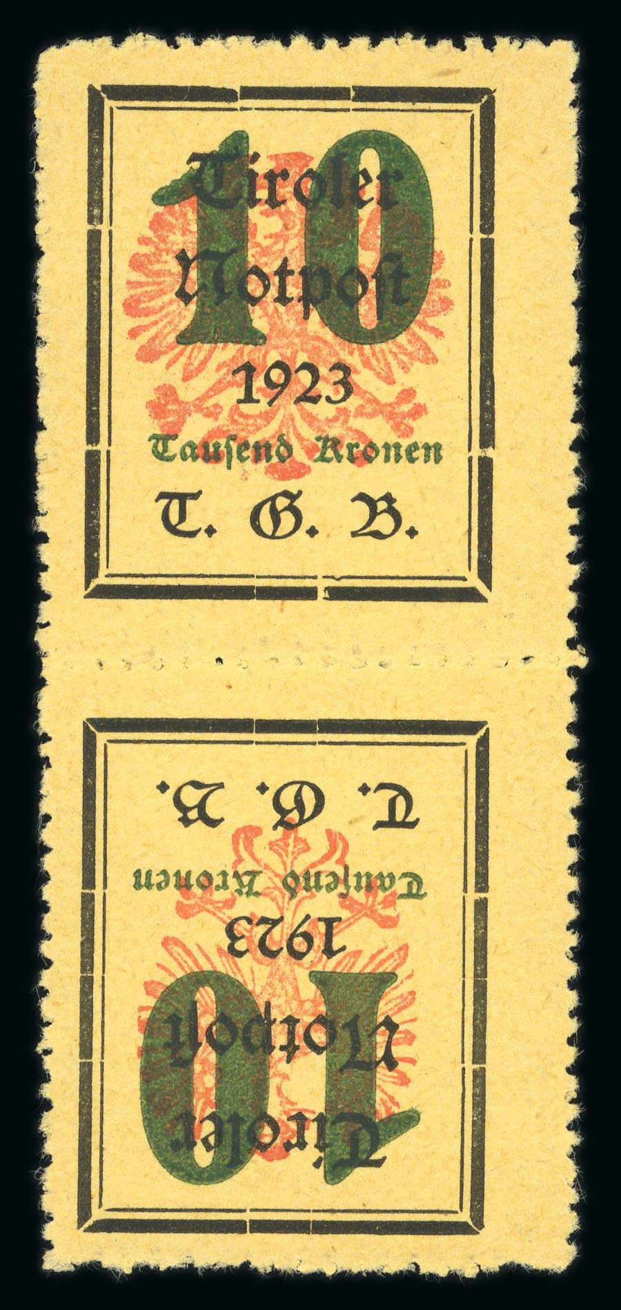Tirol: 1923, Los mit Normalmarkensatz, KEHRDRUCKPAARE (RRR!) etc., meist postfrisch bzw. mit winzigen Falzresten, selten! Hoher KW. (Image 1)