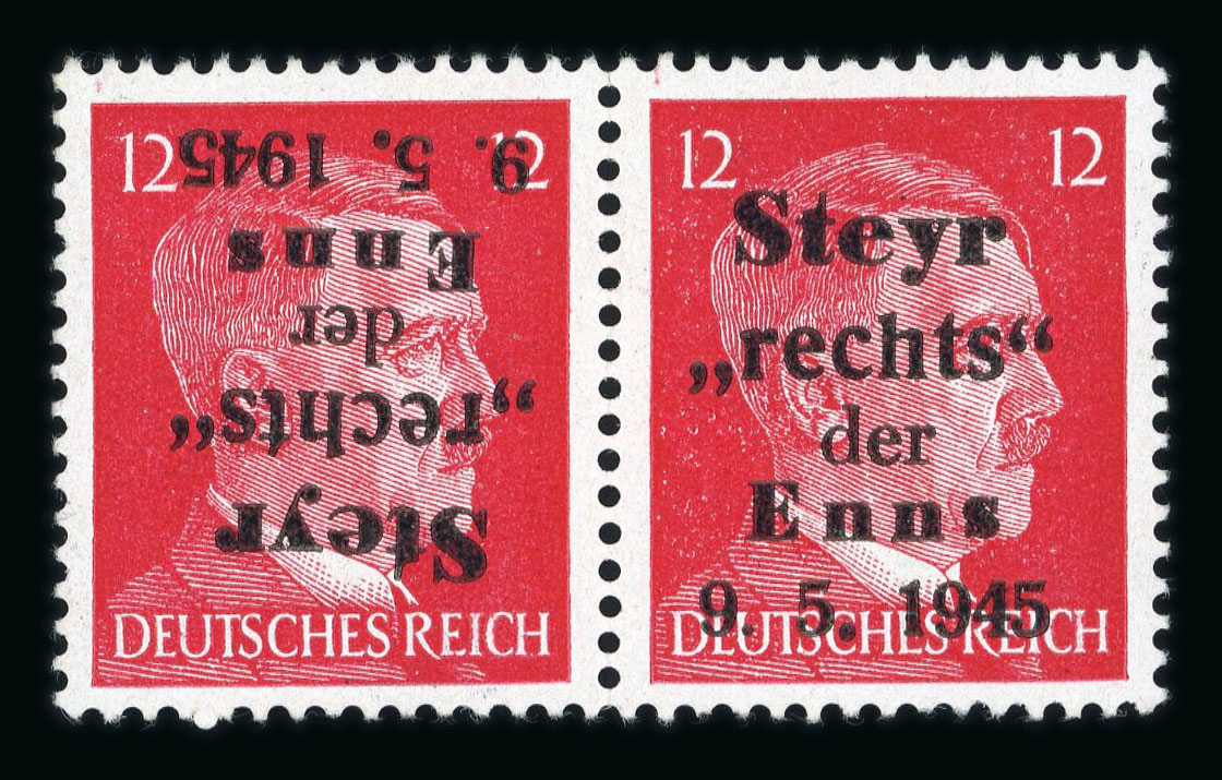 Steyr: 1945, Lokalausgabe STEYR I, Los waagrechter Paare mit TETE-BECHE - Aufdruck, meist postfrisch, alle Werte signiert, insgesamt 16 Werte / Paare, hoher KW! (Image 1)