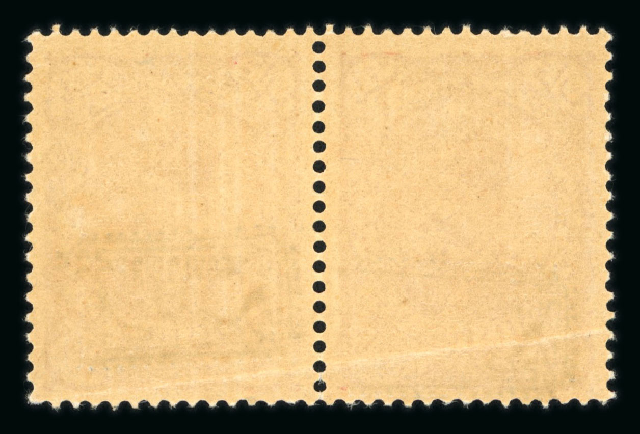 1902 Provisoire 1319 overprint, type I early impression on horizontal pair 1Kr red, the right-hand stamp with partial omission of handstamp, diagonal crease affecting both stamps, mint never hinged (Image 1)