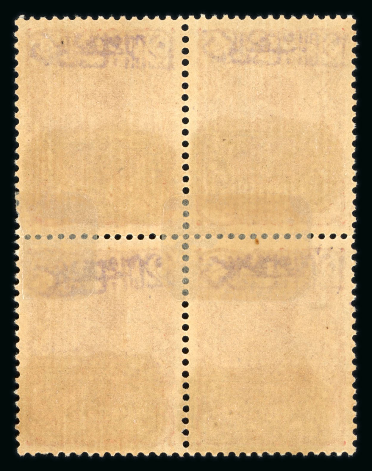 1902 revalued 12ch on 1Kr violet surcharge with additional Provisoire 1319 overprint in block of four fresh hinged mint, M Sadri opinion certificate (2023) (Image 1)