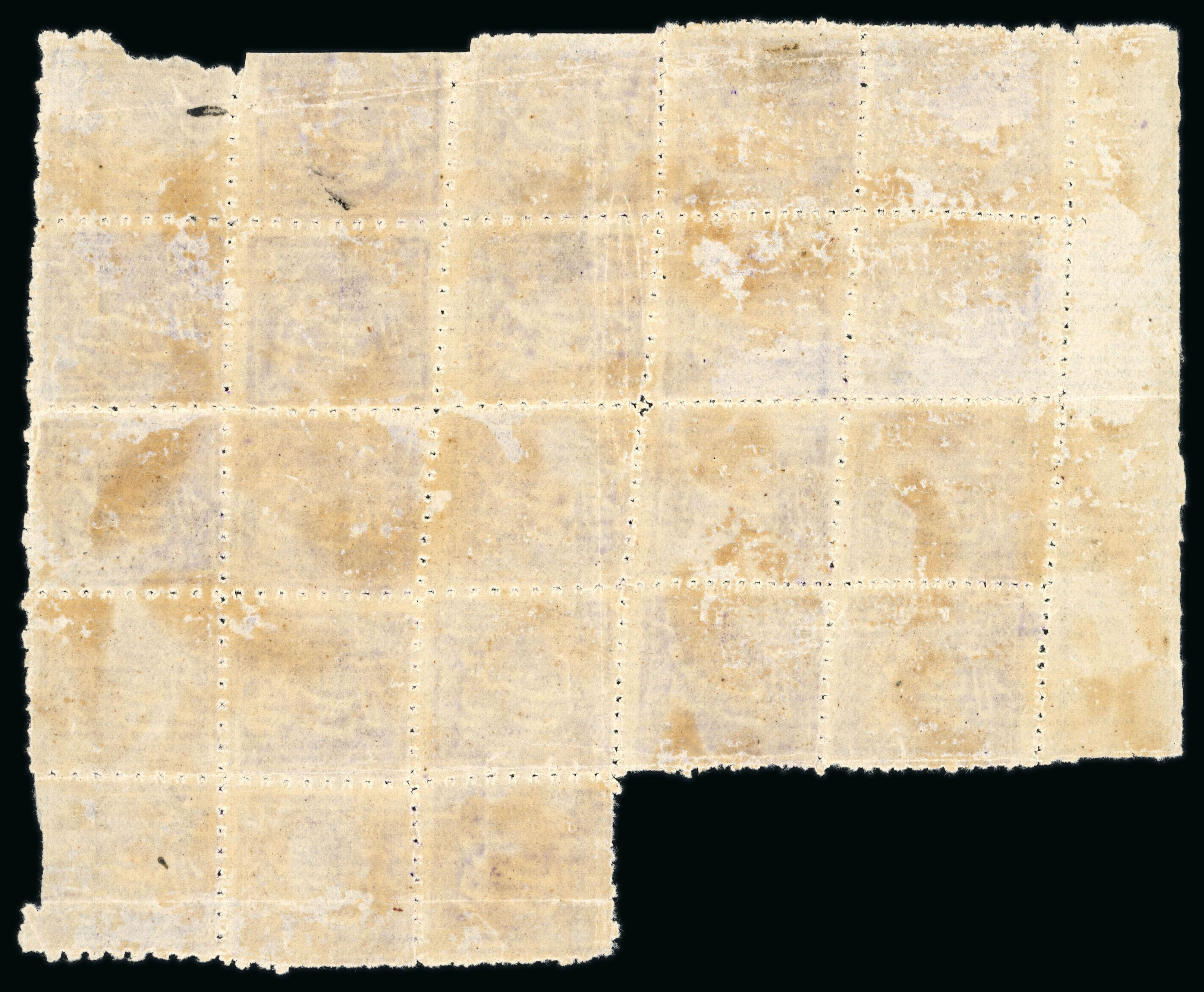 Lars Rebellion Issue: 1909 7sh. violet, from group 1, type 2, unused, the unique largest known block of twenty-three, showing position 5 with 5sh. error of value (defective), important exhibition showpiece, (Persiphila R10 + R9), cert.