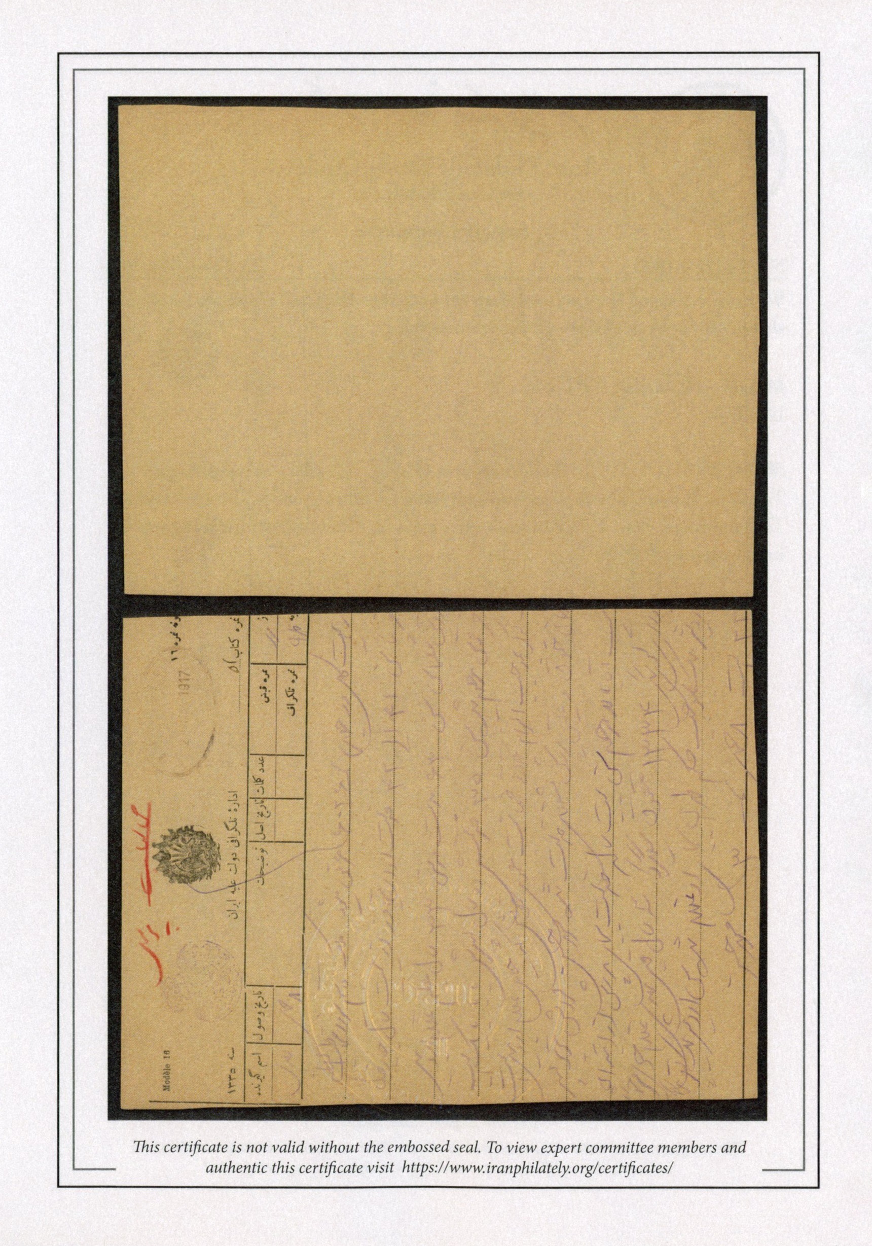 Teheran, and Mianeh to Tabriz local registered envelope; a very fine group of the first postal envelope. (Image 1)
