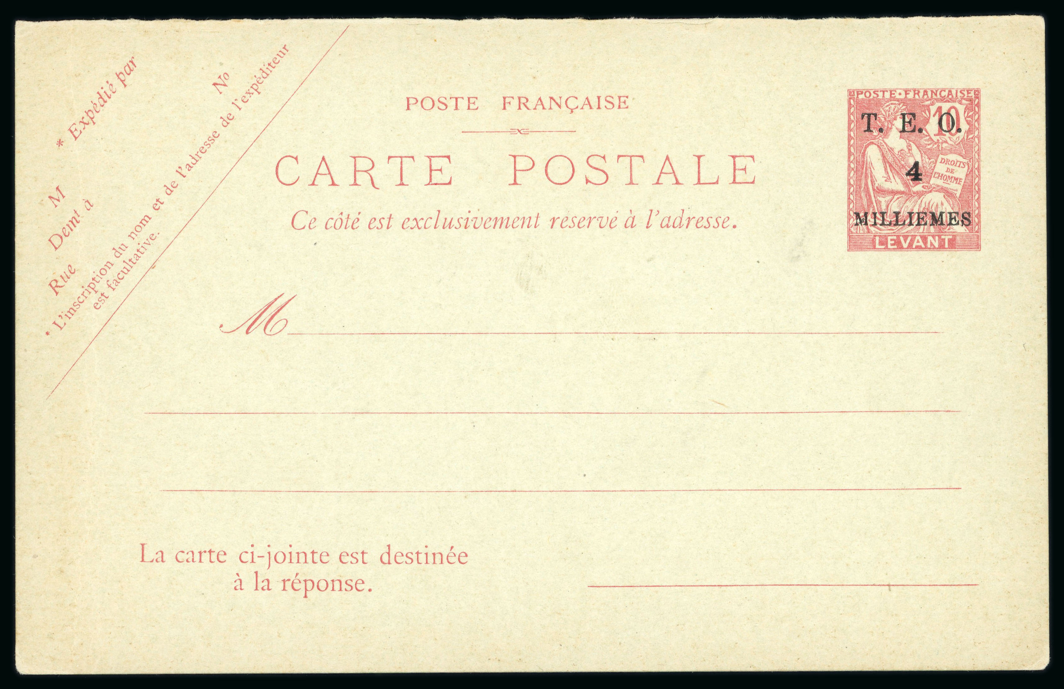 Entiers Postaux : 1919, entiers type Mouchon retouché cartes postales du Levant surchargés 3 et 4 Millièmes Y&T n° CP1 et CP2 neufs, rare et TB. (Image
