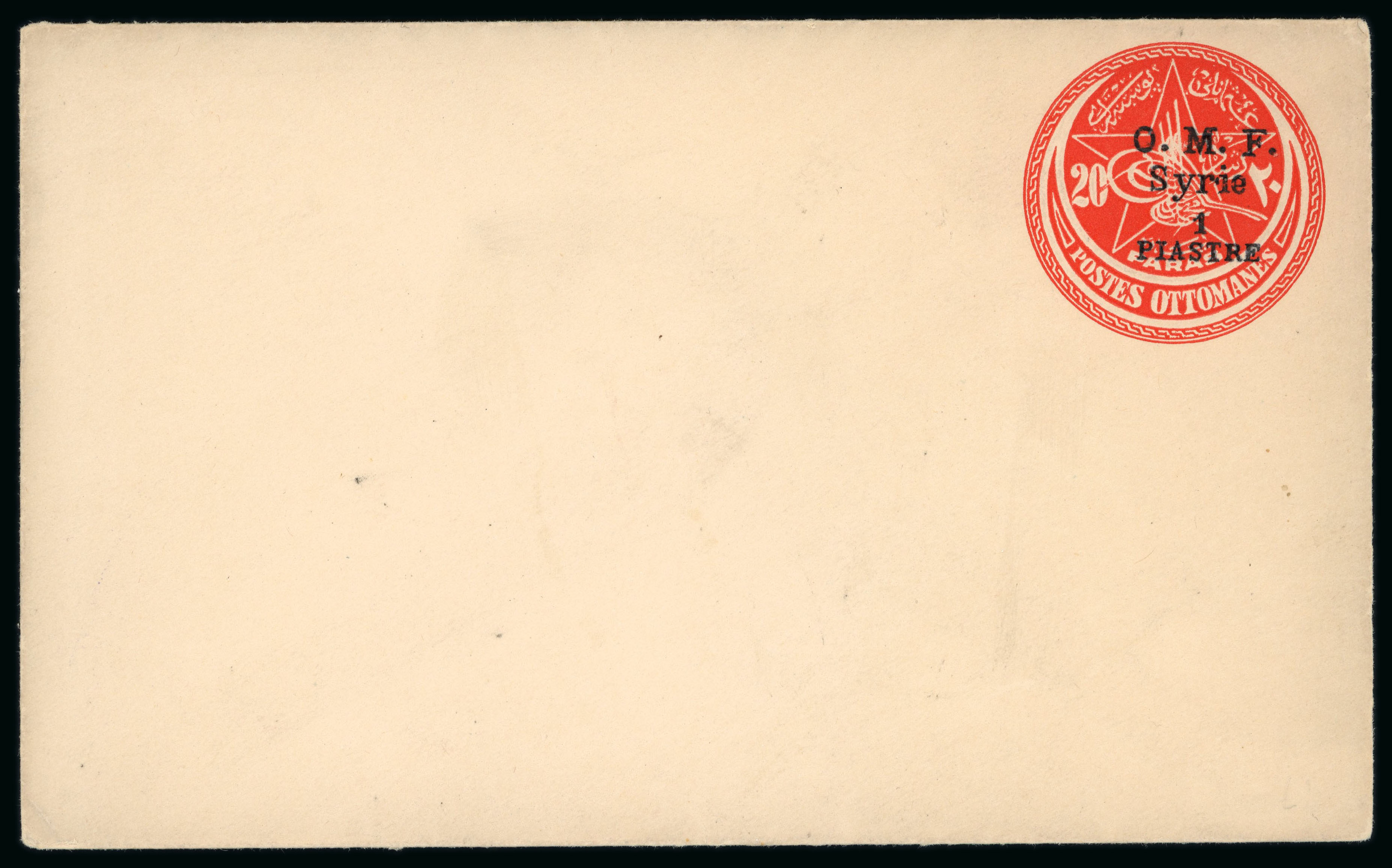 Syrie Française/Ain-Tab Entiers Postaux : 1921, entier postal type "Toughra et Croissant" rouge surcharge 1 Piastre Y&T n° EN2 neuf, seulement 33 exemplaires connus, TB. (Image 1)
