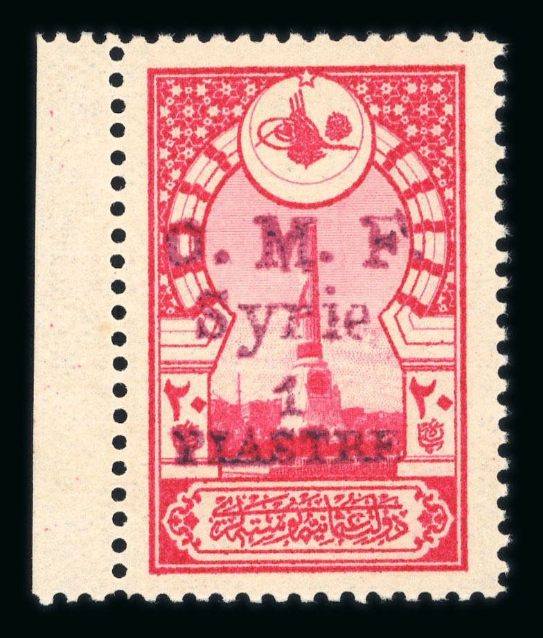Syrie Française/Ain-Tab : 1921, timbre de Turquie surchargé 1 Piastre rouge (surcharge noire) neuf ** MNH, timbre non émis (cat. Maury 1976), certificat François Feldman, grande rareté, TB. (Image 1)