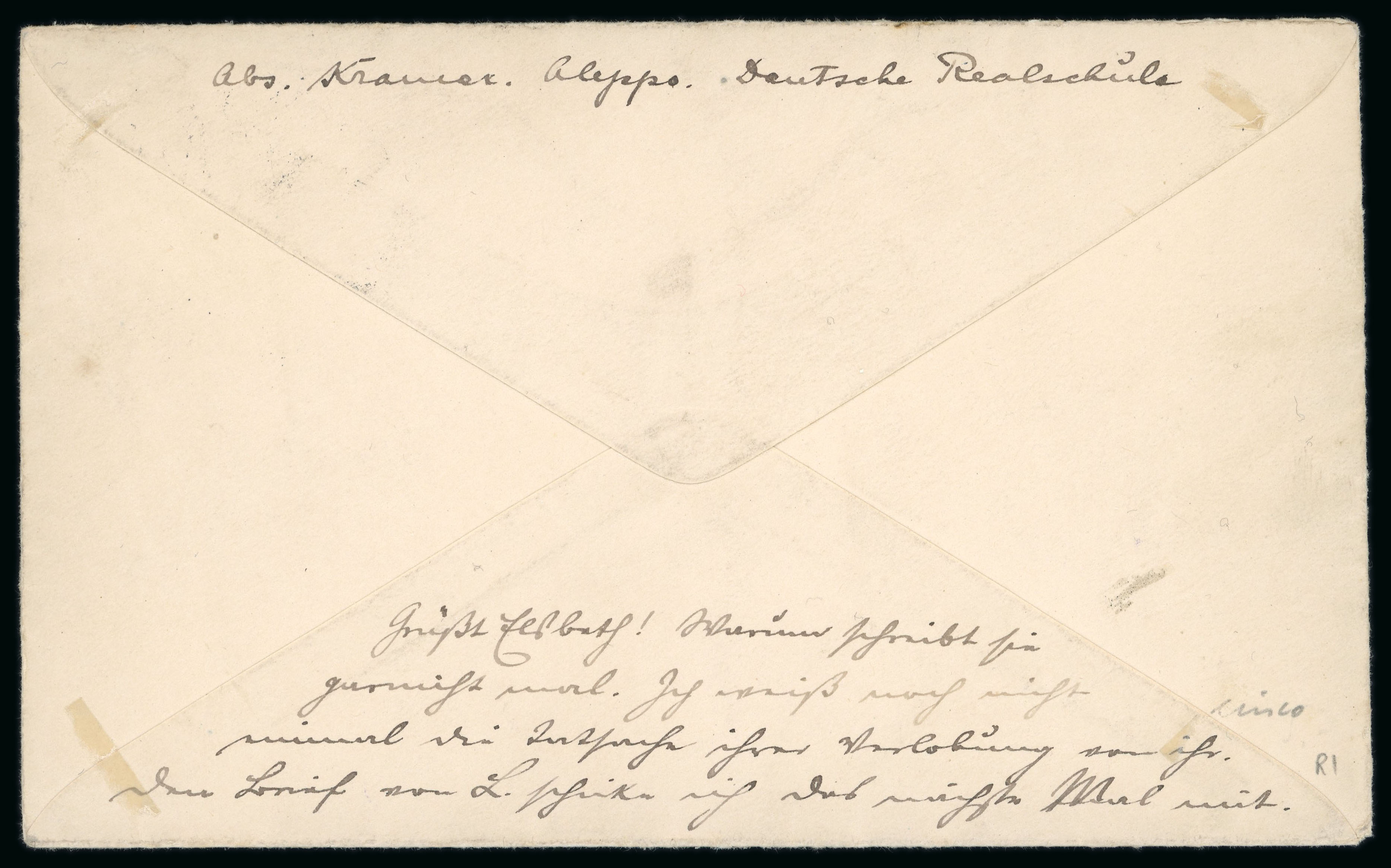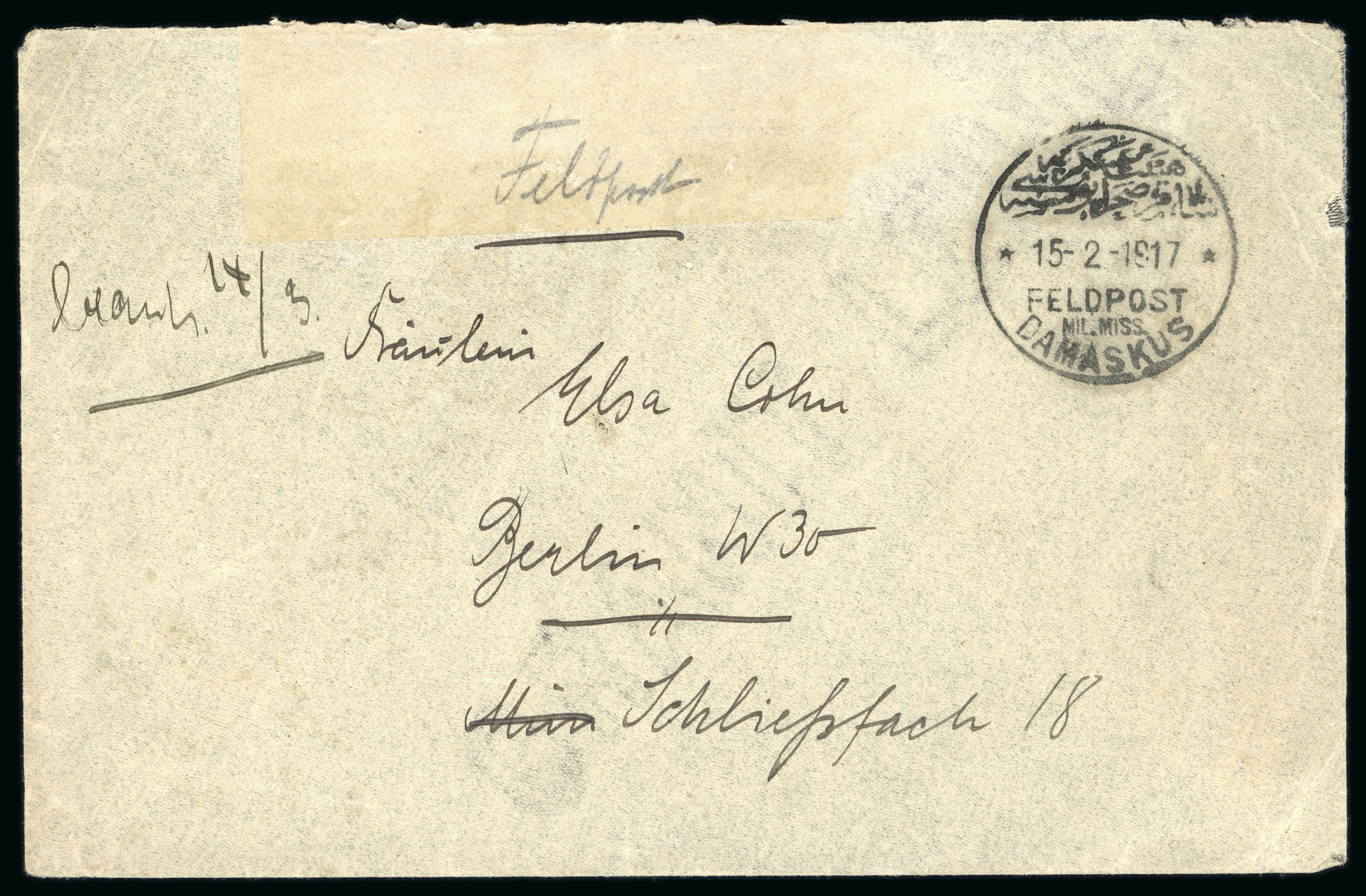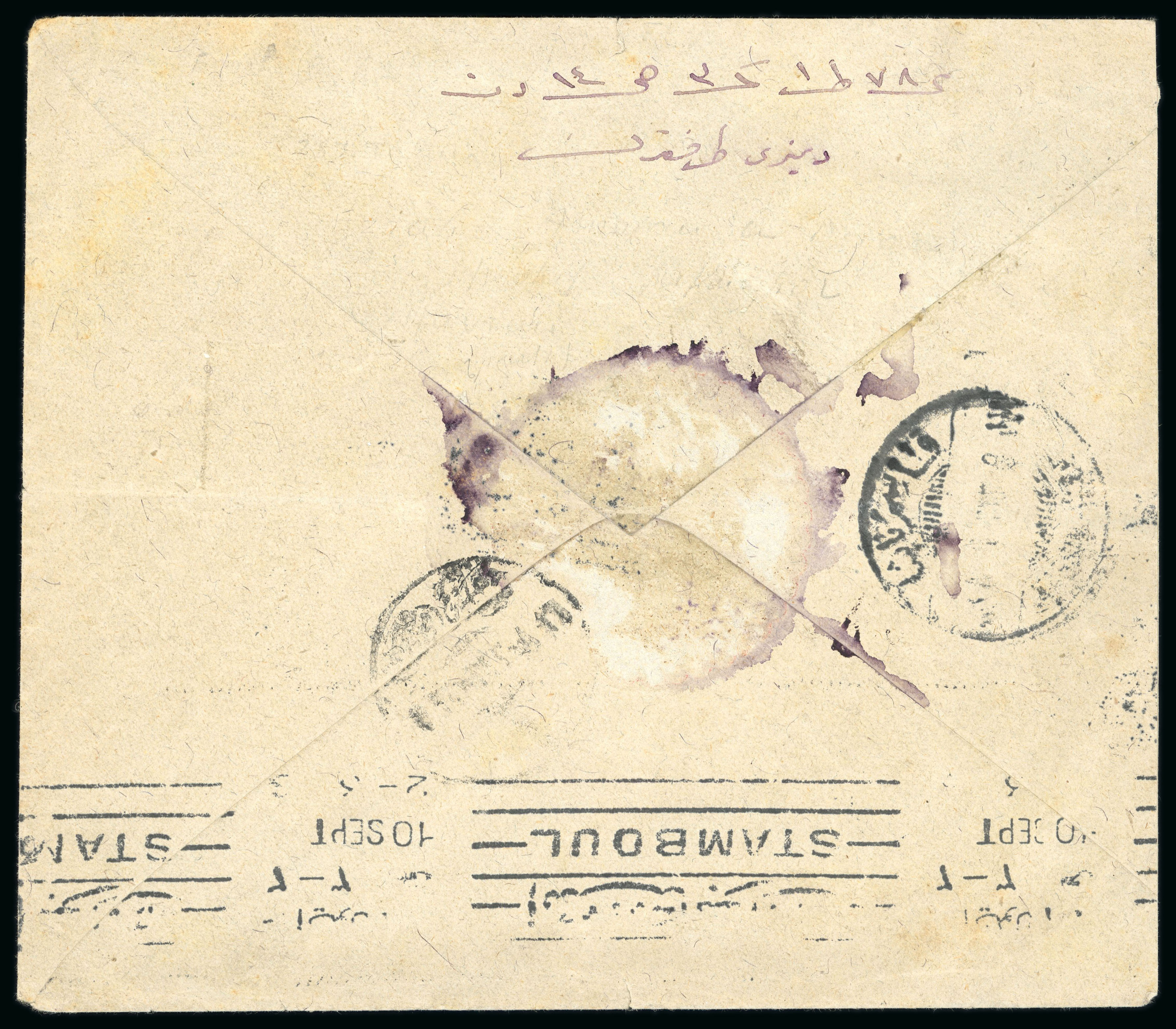 Syria/Empire Ottoman : 1916, lettre de Septembre 1916 avec affranchissement composé envoyée de Ezra pour Istambul, seule lettre connue avec le cachet à date bilingue de cette petite ville du sud de la Syrie actuelle, grande rareté, TB. (Image 1)