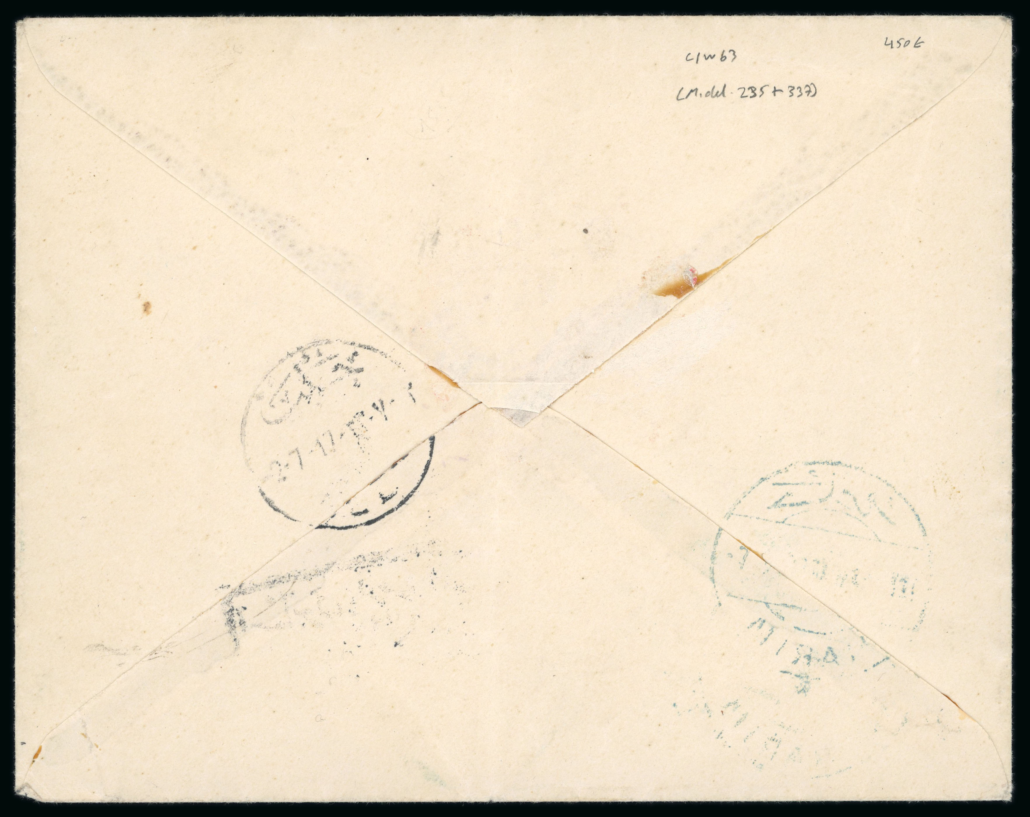 contient un très grand nombre de lettres et cachets rares, des affranchissements multiples et composés, recommandés, destinations diverses, censures Ottomanes, franchises militaires et bien d'autres choses encore. Une collection de toute une vie