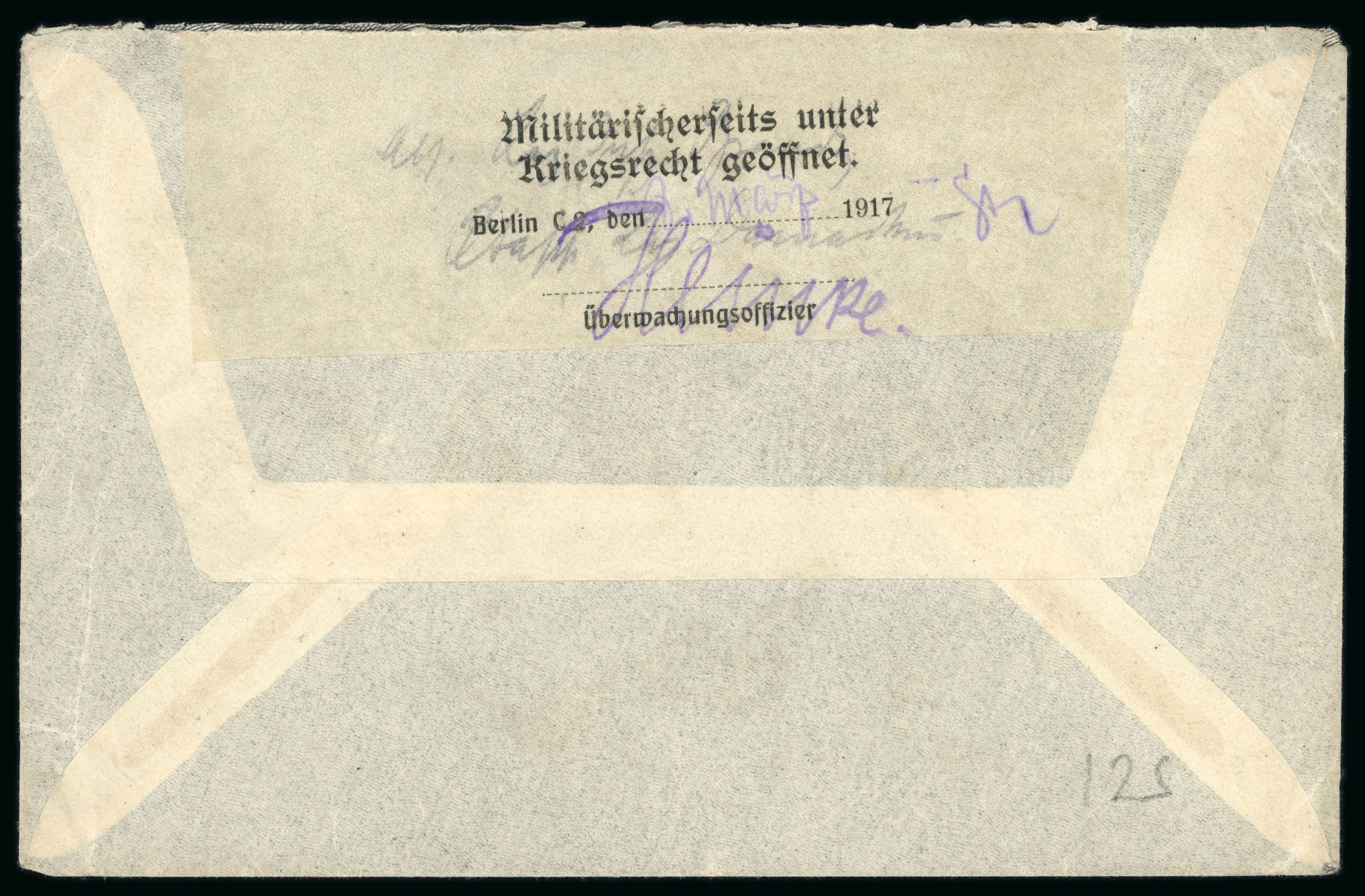 Syria/Empire Ottoman : 1918, entier postal type Thougra 20 paras rouge avec complément d'affranchissement de deux timbres envoyé à Hannovre en Allemagne, cachets à date Feldpost bilingue Alep et rare vignette patriotique en Allemand "
