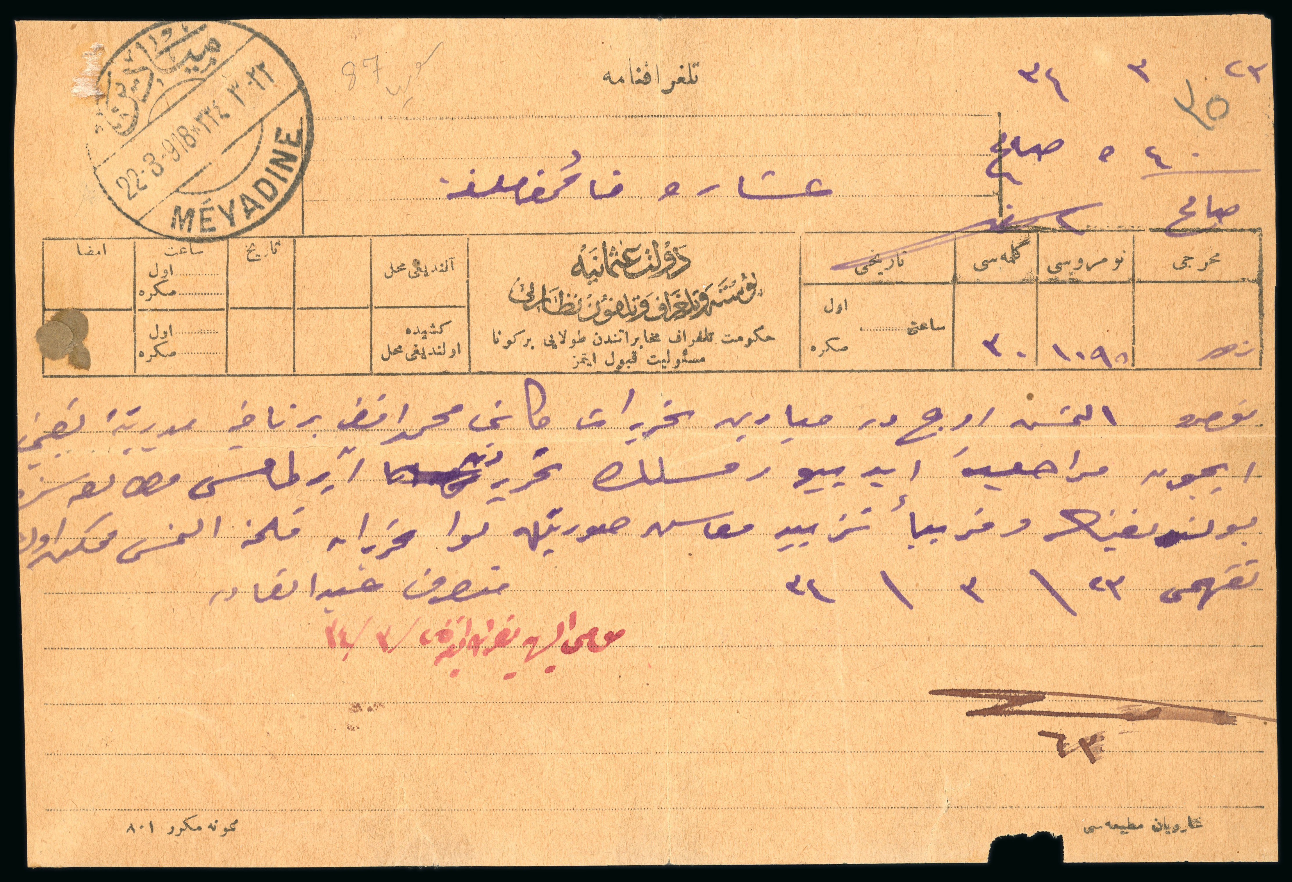 plusieurs centaines de lettres, cartes et plis divers avec pour chacune d'entre ces pièces une étude précise des différents Bureaux Syriens, le plus souvent répertoriés grace au catalogue C&W consacré aux Bureaux de l'Empire Ottoman. L'ensemble