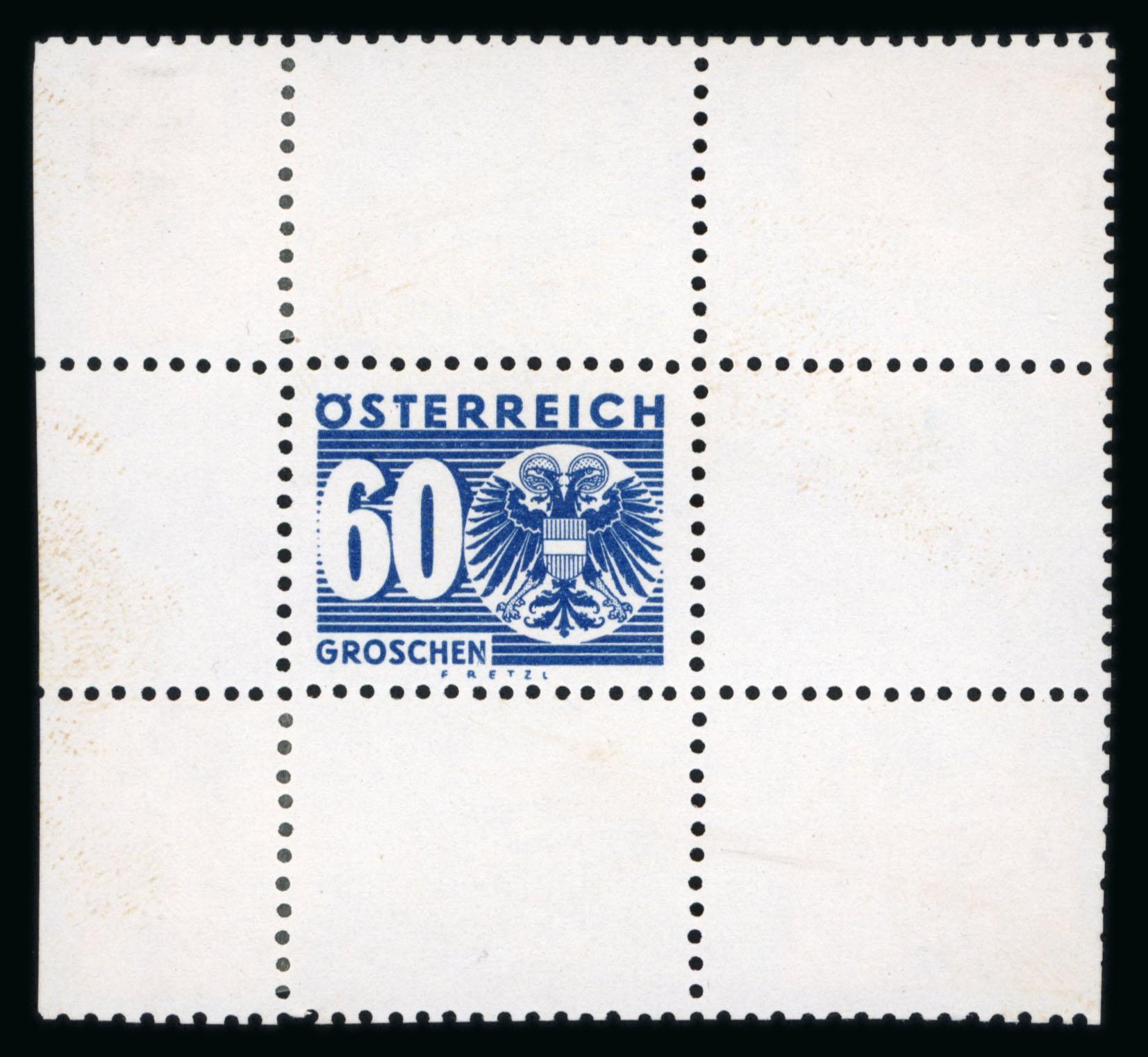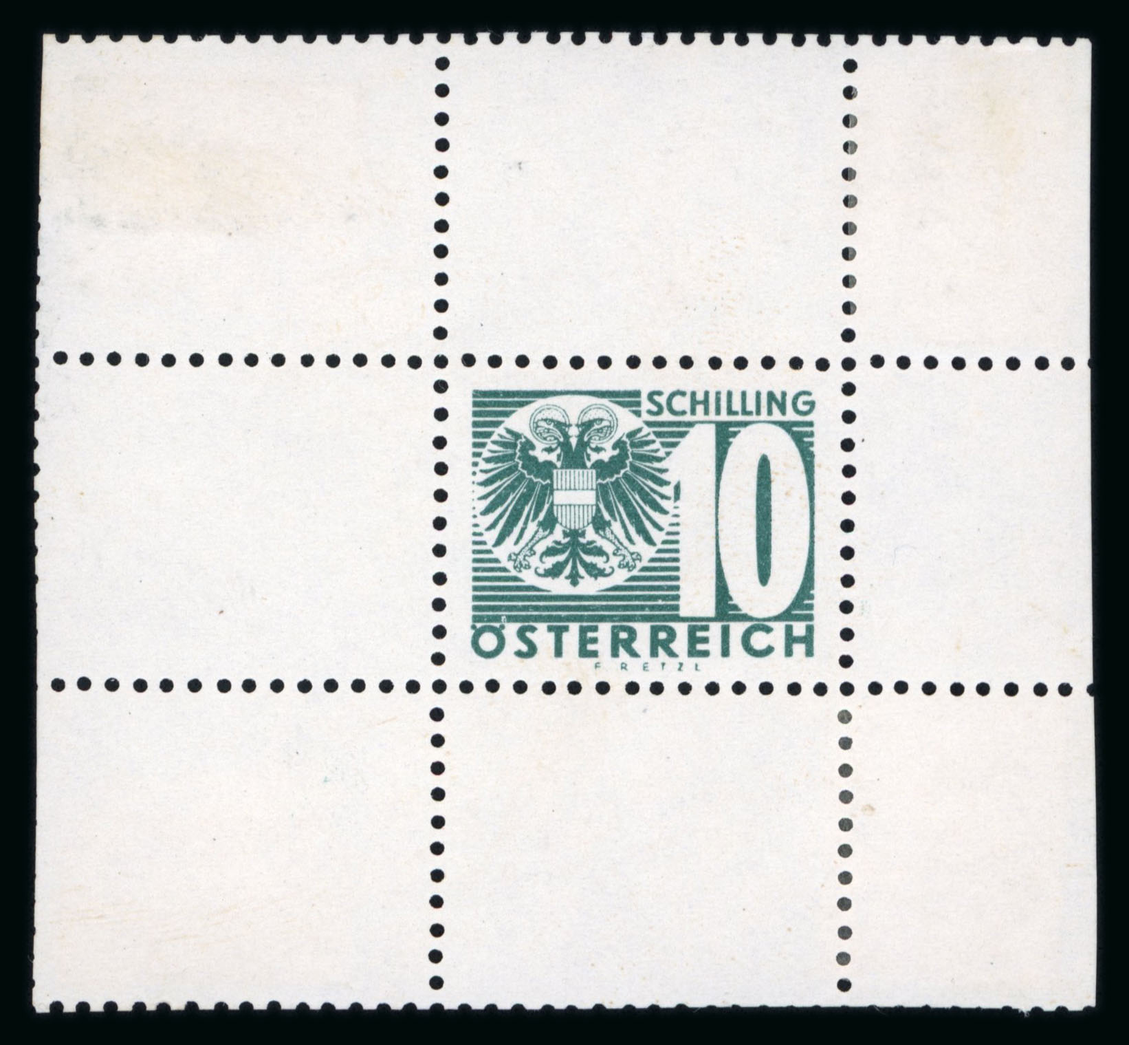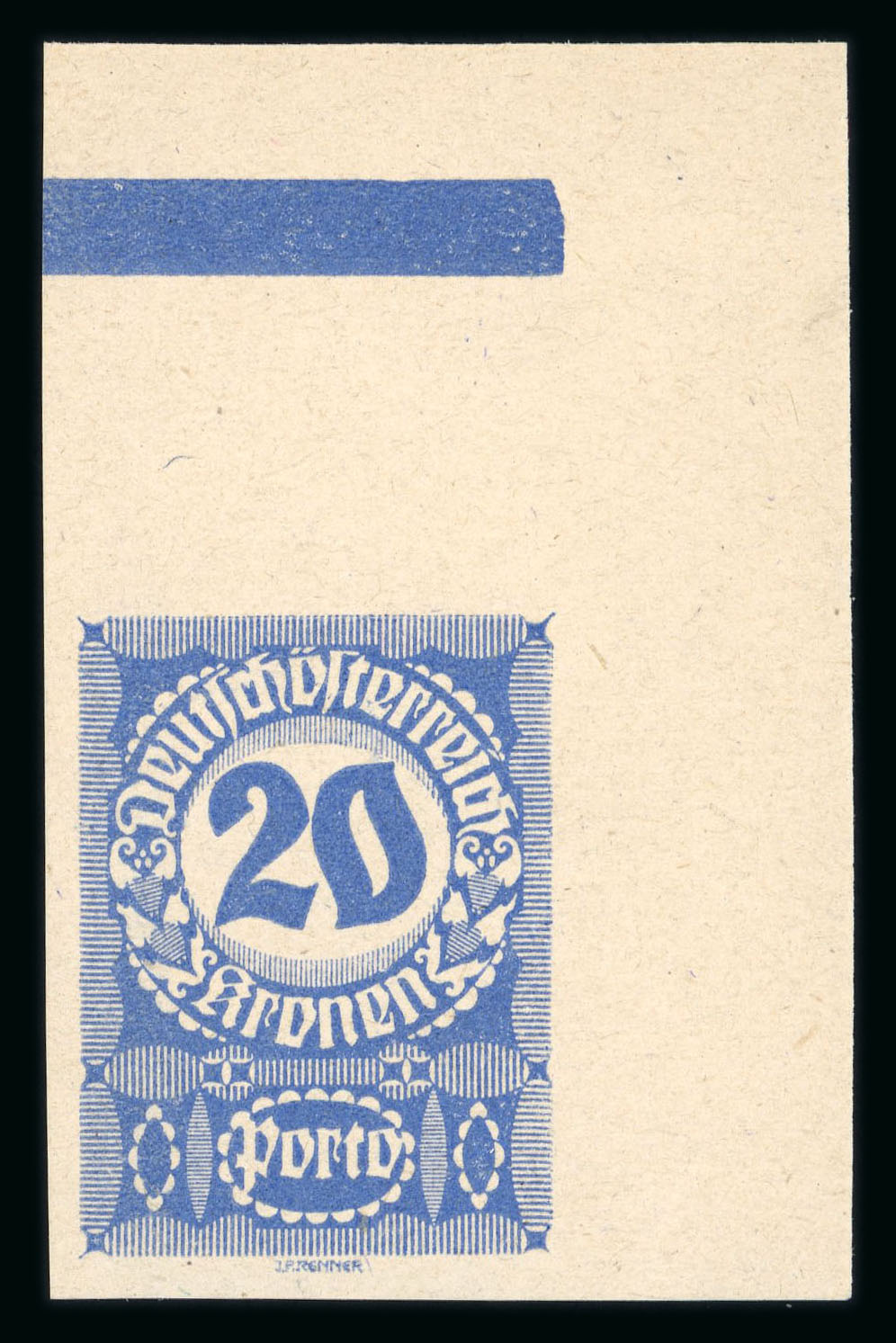 1919-21, attraktiver Satz ungezähnter ECKRANDSTÜCKE in tadelloser postfrischer Erhaltung, Papiersorten gemischt, ANK 84-92 U, ANK 300€. (Image