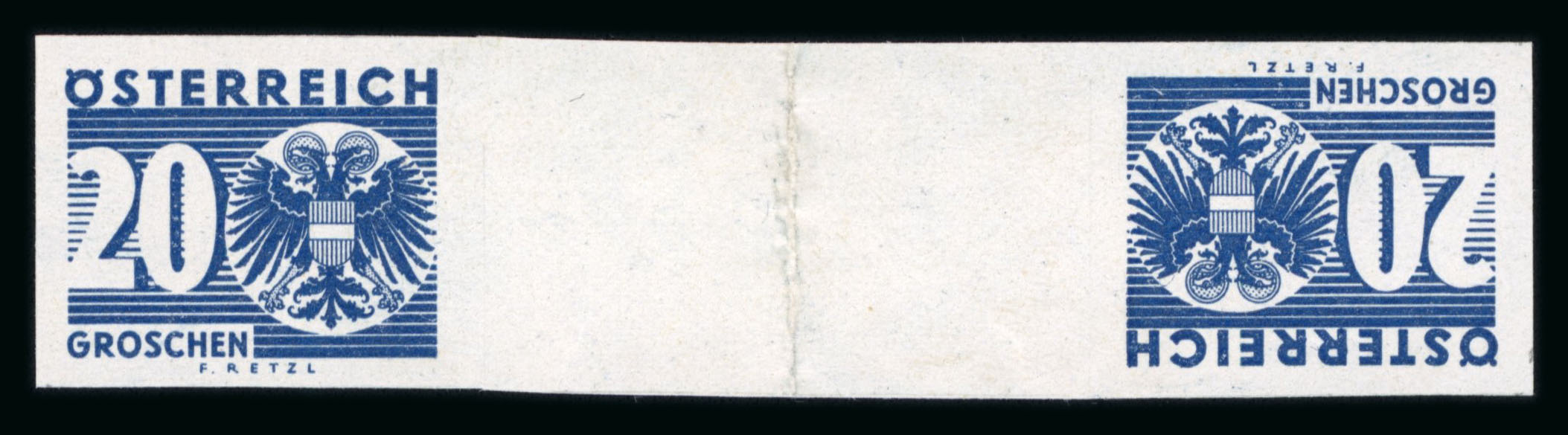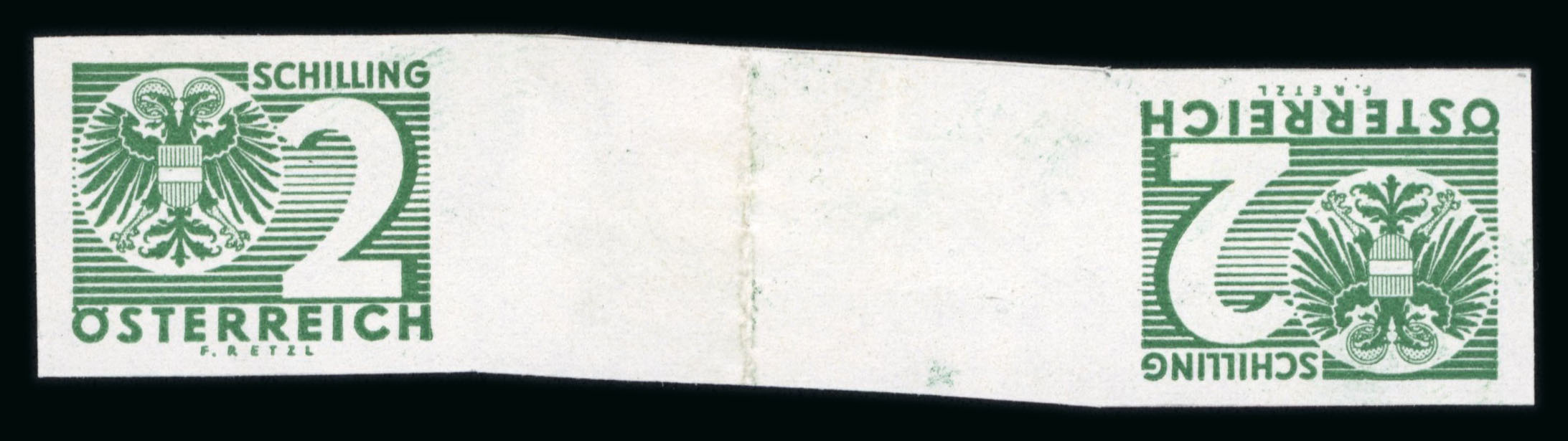 1935, 2Sch als seltenes UNGEZÄHNTES KEHRDRUCKPAAR mit ZWISCHENSTEG, postfrisch mit typischem Faltungsbug im Zwischensteg, Attest Soecknick, ANK 172 KZ U, ANK €500. (Image 1)