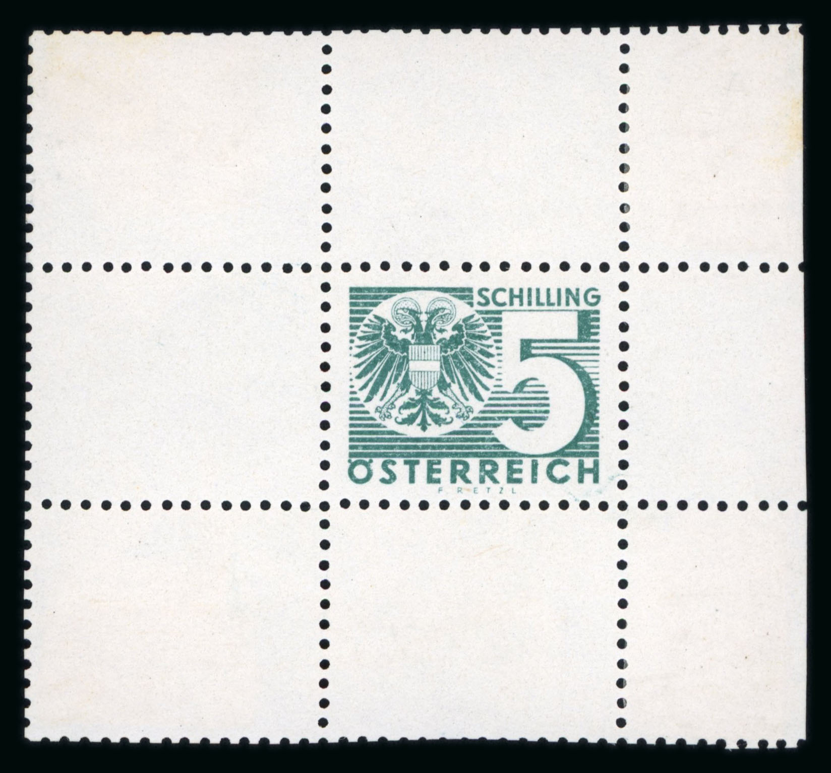 1946, Posthornzeichnung mit KOPFSTEHENDEM AUFDRUCK, aller 8 bekannten Werte in einwandfreier postfrischer Erhaltung, teils SELTEN, verschieden signiert Puschmann, Zenker, Wallner, etc. Attest Soecknick. (Image 1)