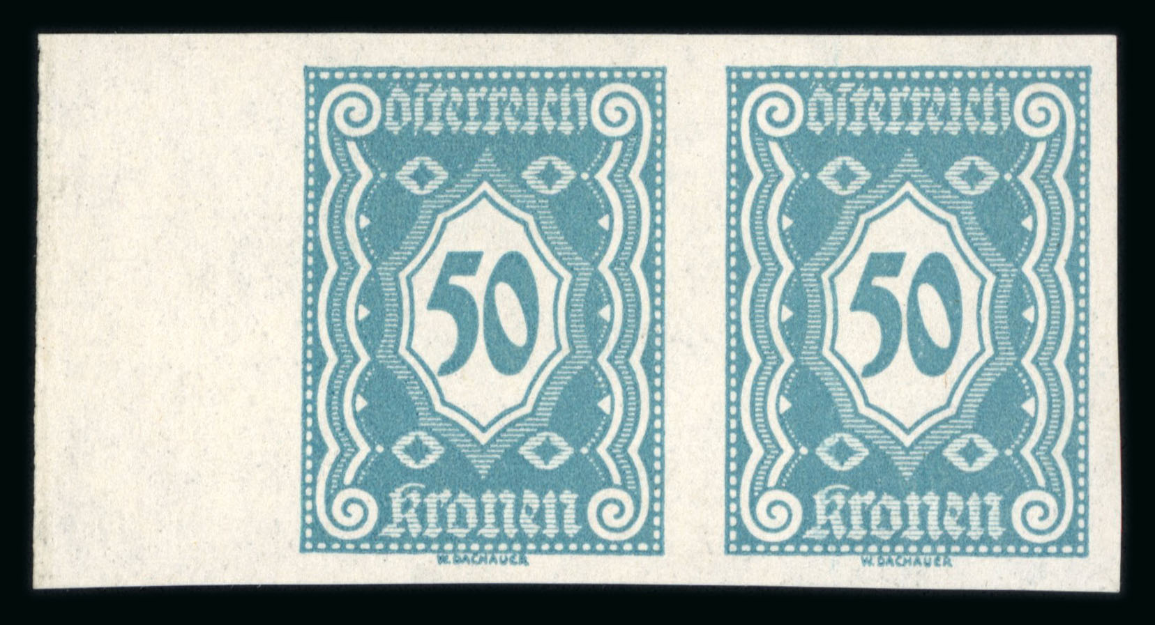 1922, ungezähnte waagrechte Paare der Portomarken in neuer Ziffernzeichnung, ungebraucht, echt und einwandfrei, 6000K signiert Bühler, Attest Soecknick, ANK 118 U - 131 U, ANK 1000€ +. (Image 1)